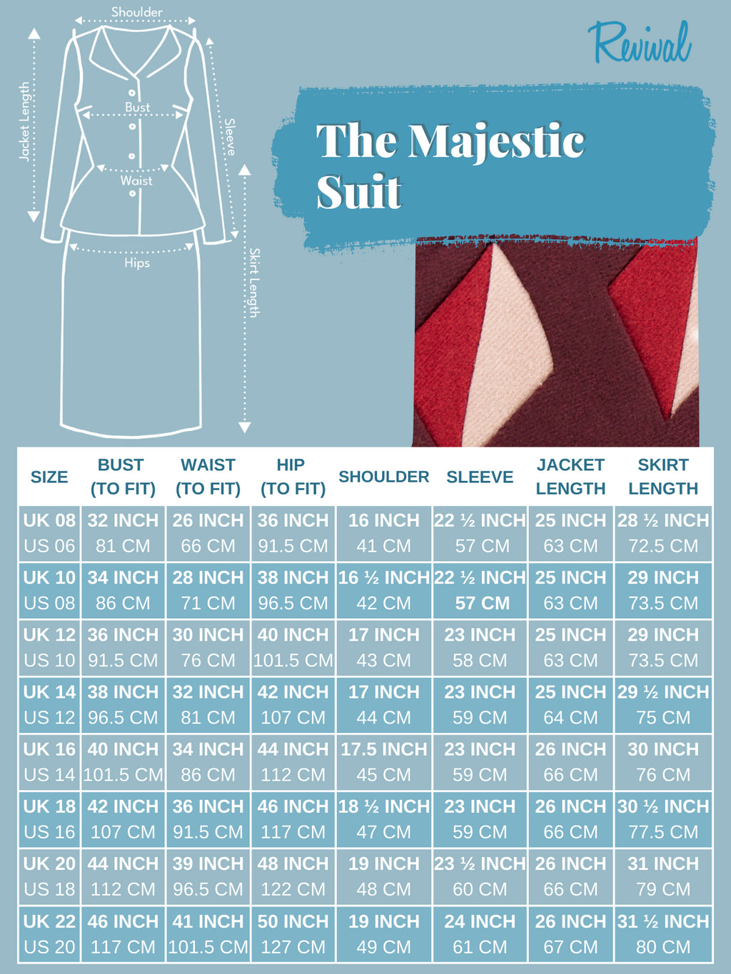This Majestic suit from our exclusive Socialite label was named to pay homage to our beloved Queen Elizabeth II, who died during the design and development of this suit. This latest colourway in cardinal red will make you feel like royalty and is perfect for any patriotic vintage fairs and festivals or a smart afternoon tea with the girls.