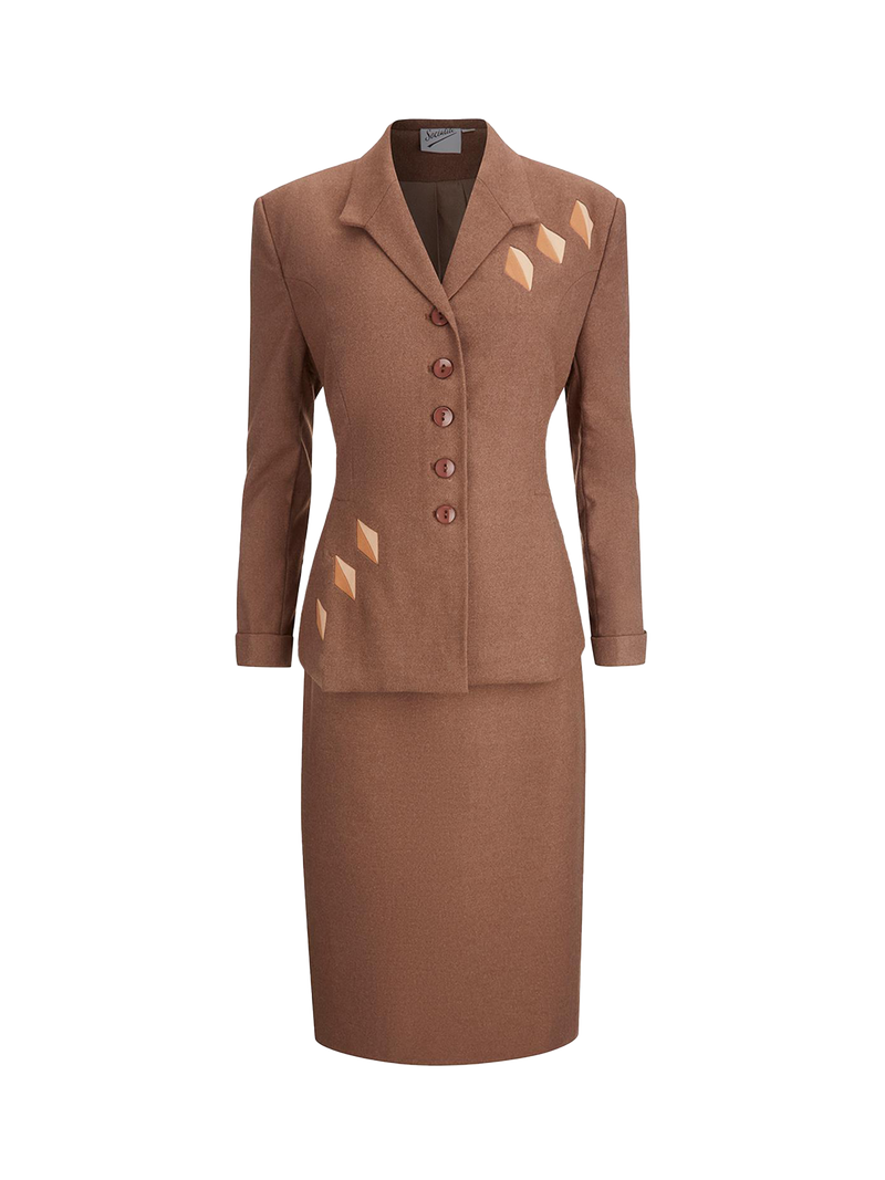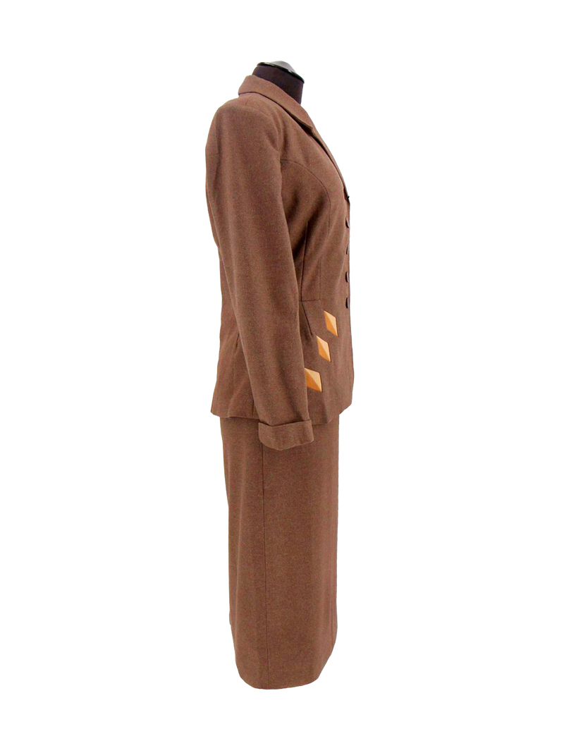 1940s Vintage Majestic Skirt Suit in Quail Brown