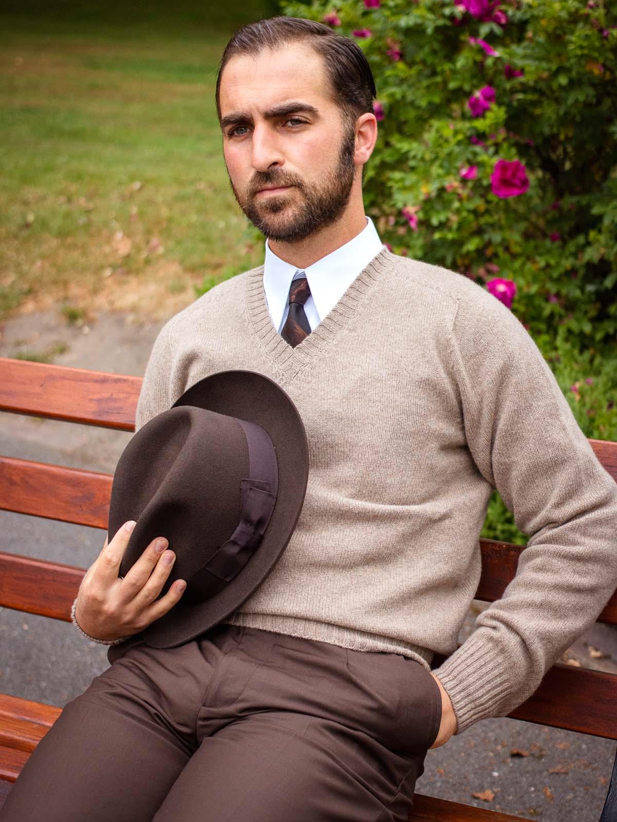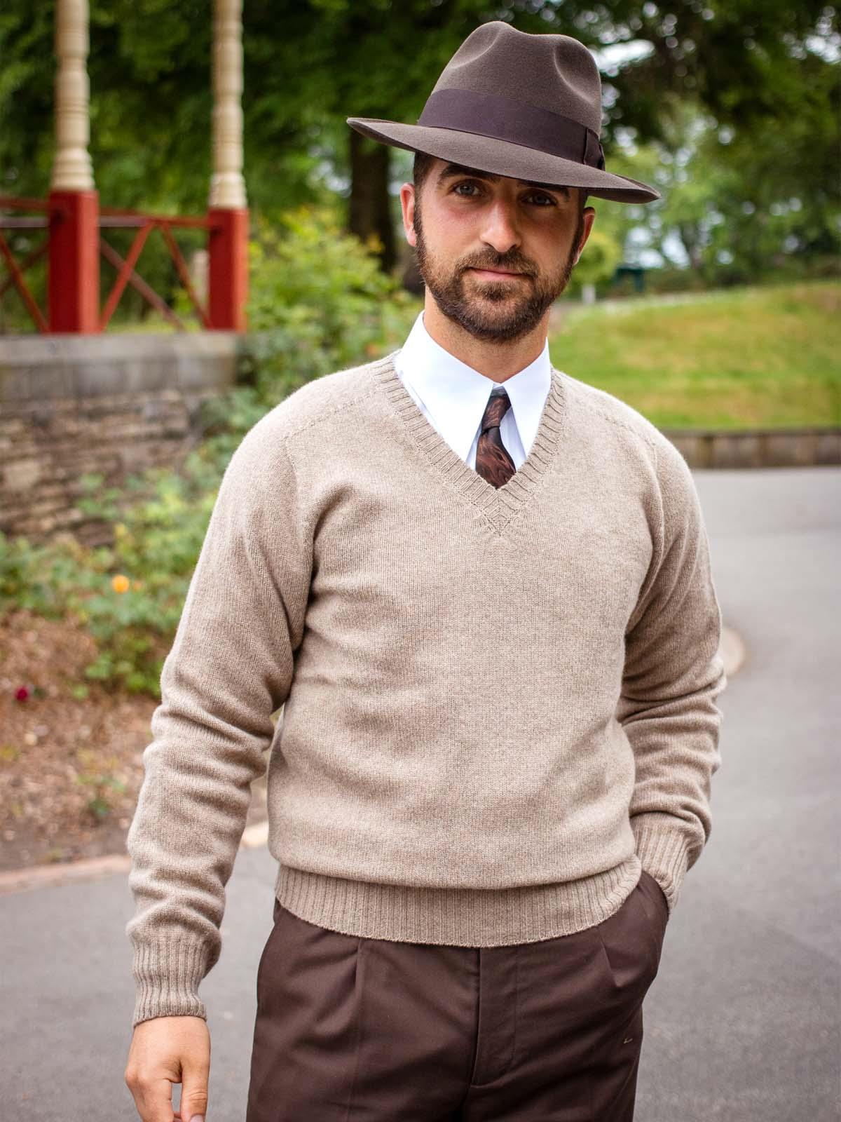 Expertly hand produced from pure Merino wool. High-quality knitwear to give you a classic wartime forties era look.