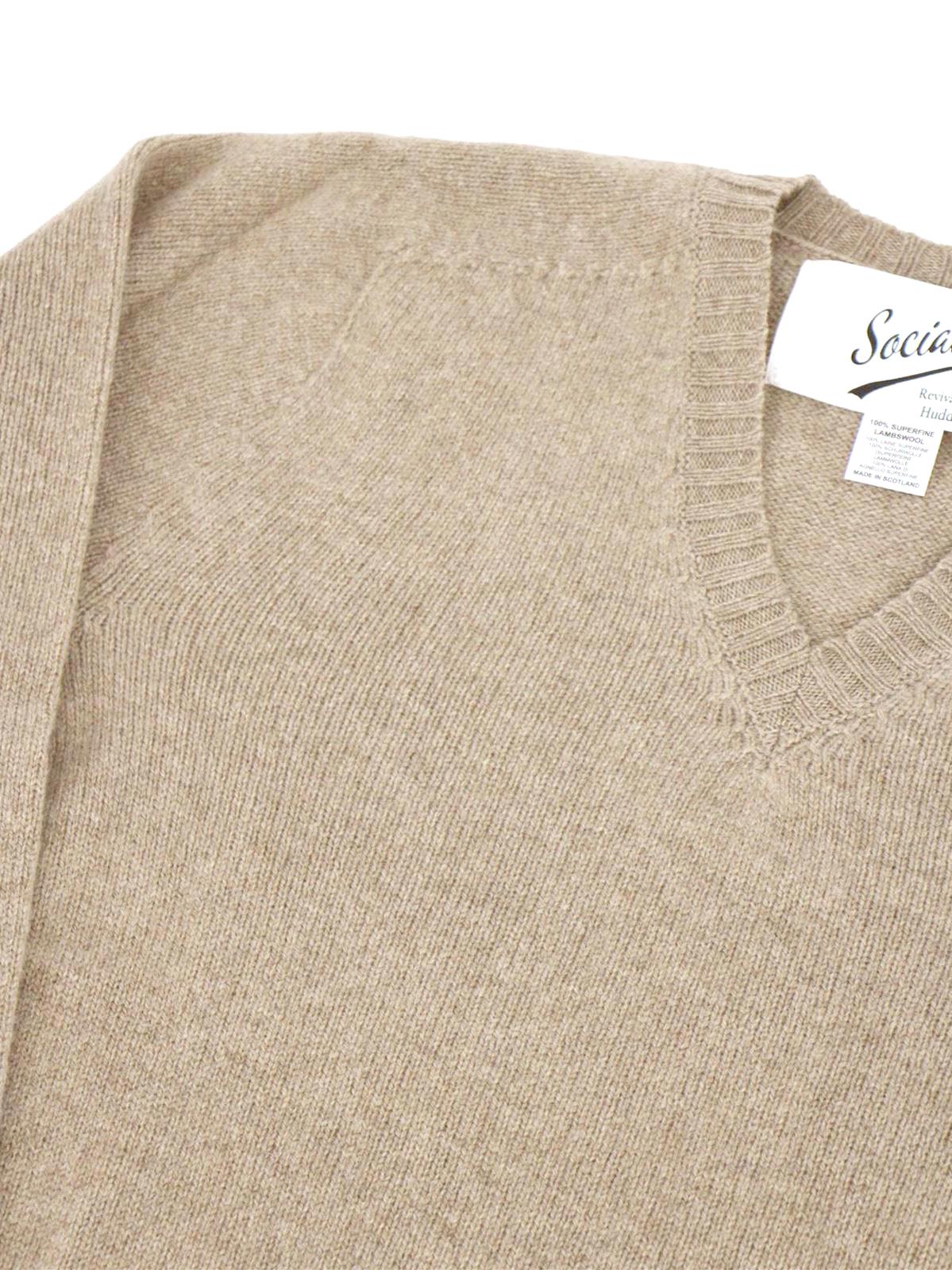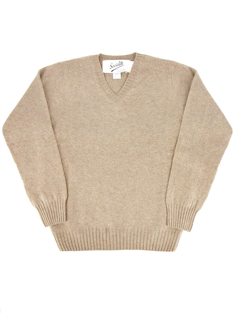 1940s Vintage Scottish Lambswool V-Neck Jumper in Clay Beige