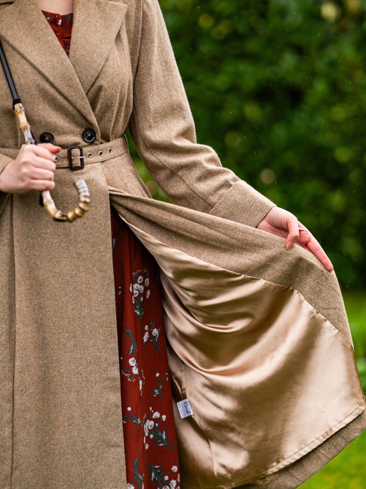 The fabric of our Promenade coat is a similar weight to the original vintage coat: ideal for cool days and evenings but not heavy enough for the thick of winter.