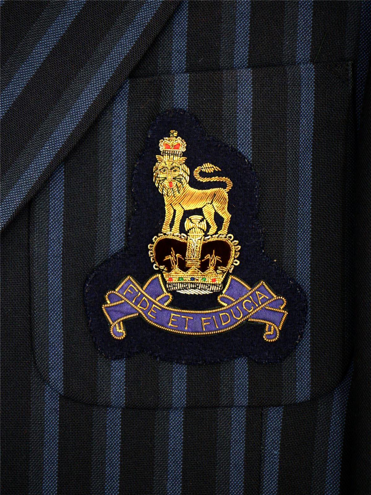 The chest pocket has a three-dimensional crest with the motto Fide et Fiducia (in faith and trust).