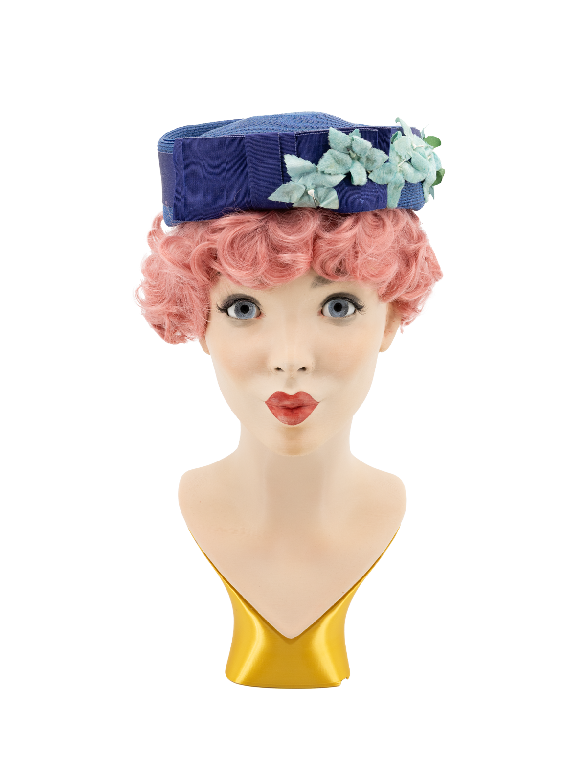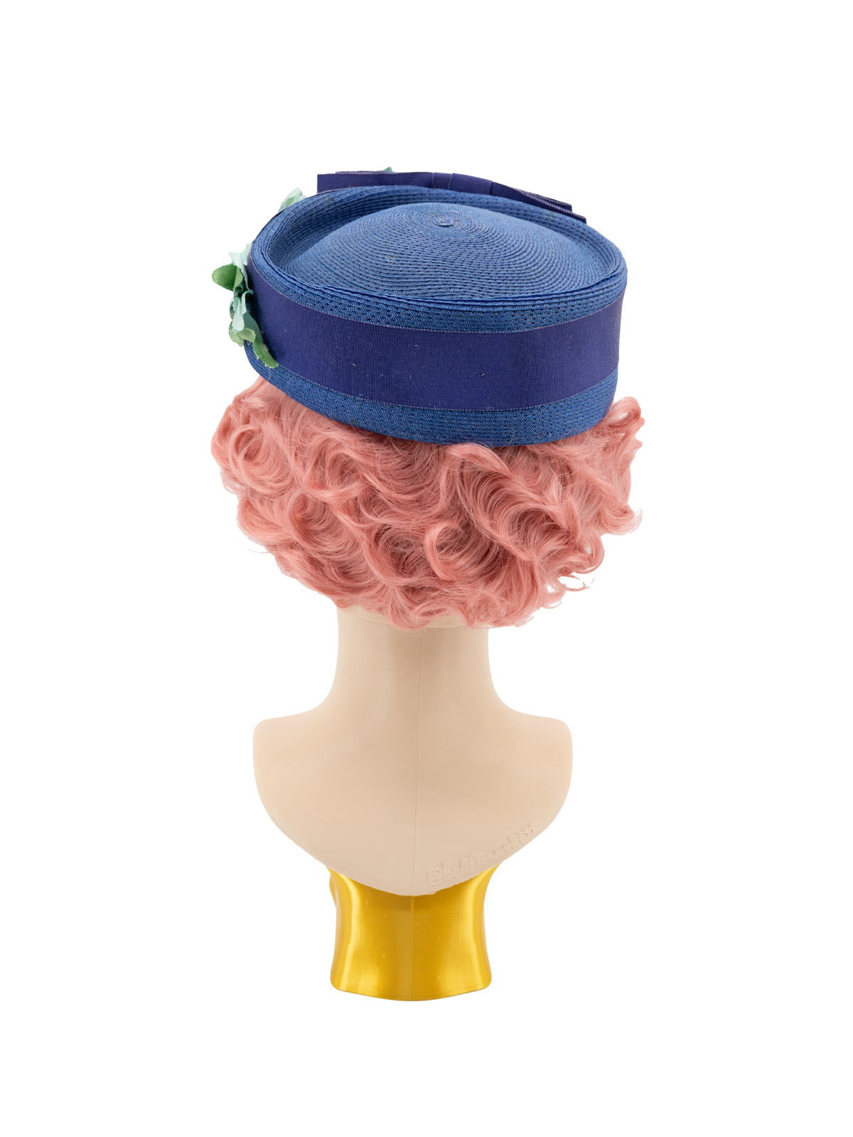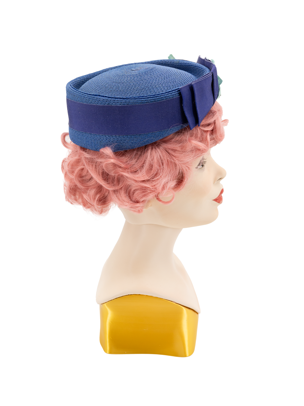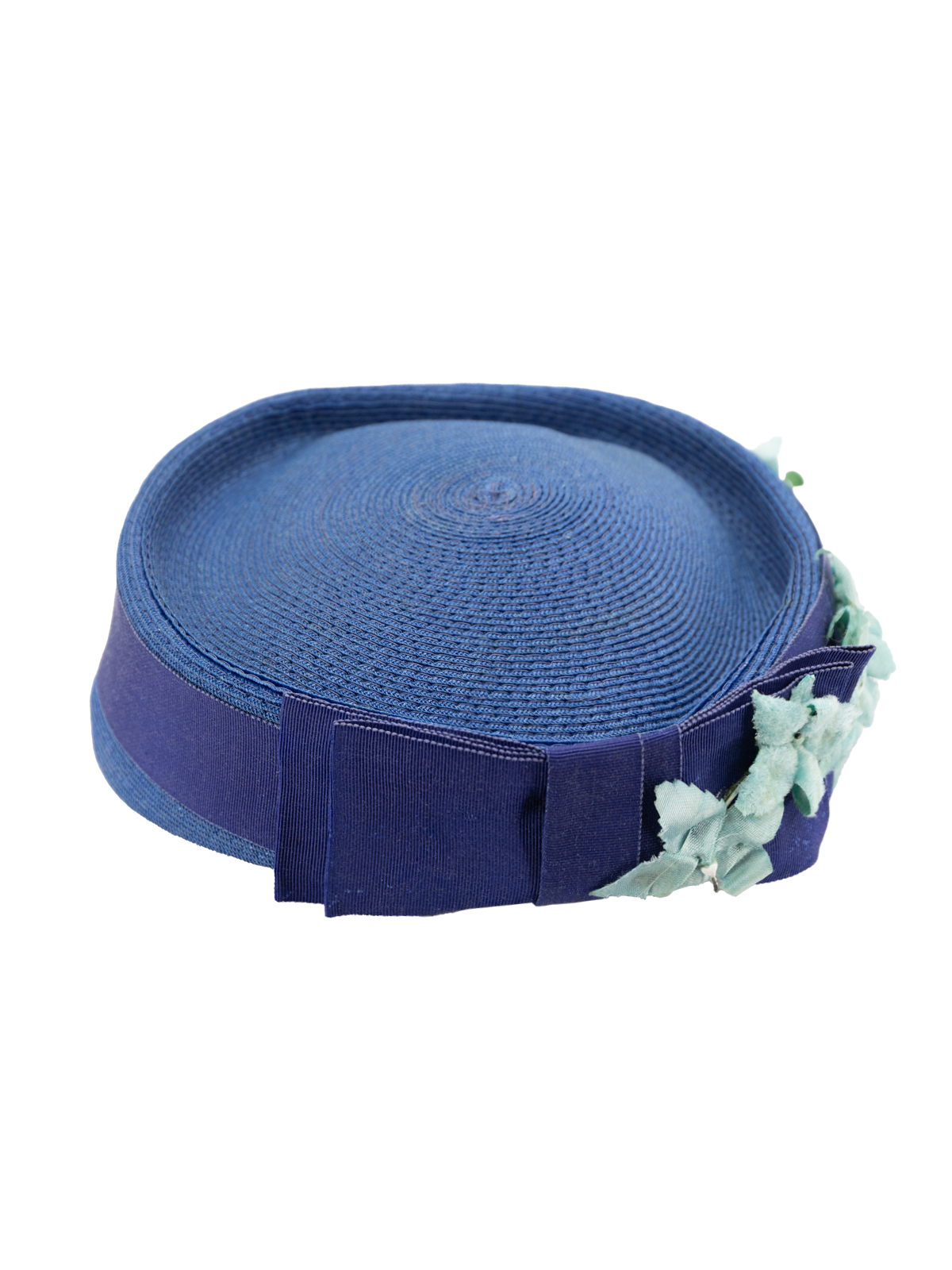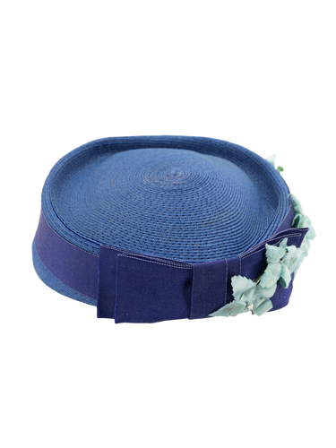 1940s Vintage Woven Pillbox Hat Floral Trims - Blue