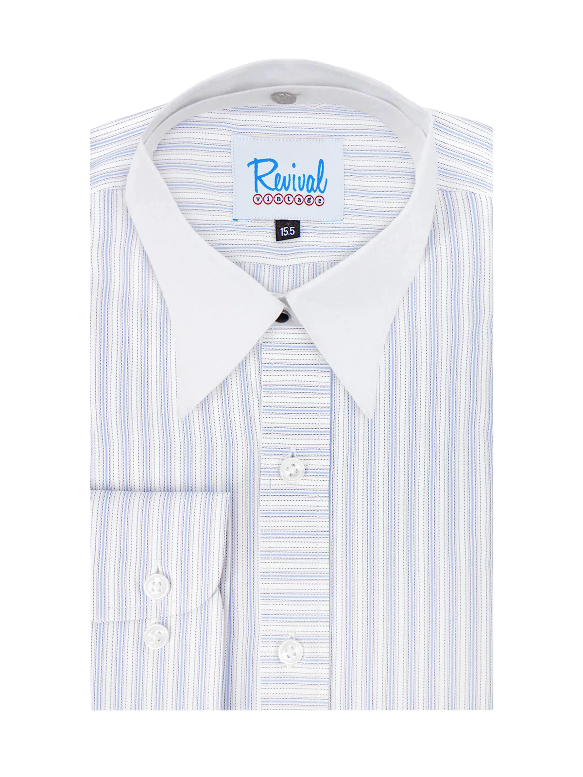 White Detachable Spearpoint Shirt - Blue & Pink Orton Stripe