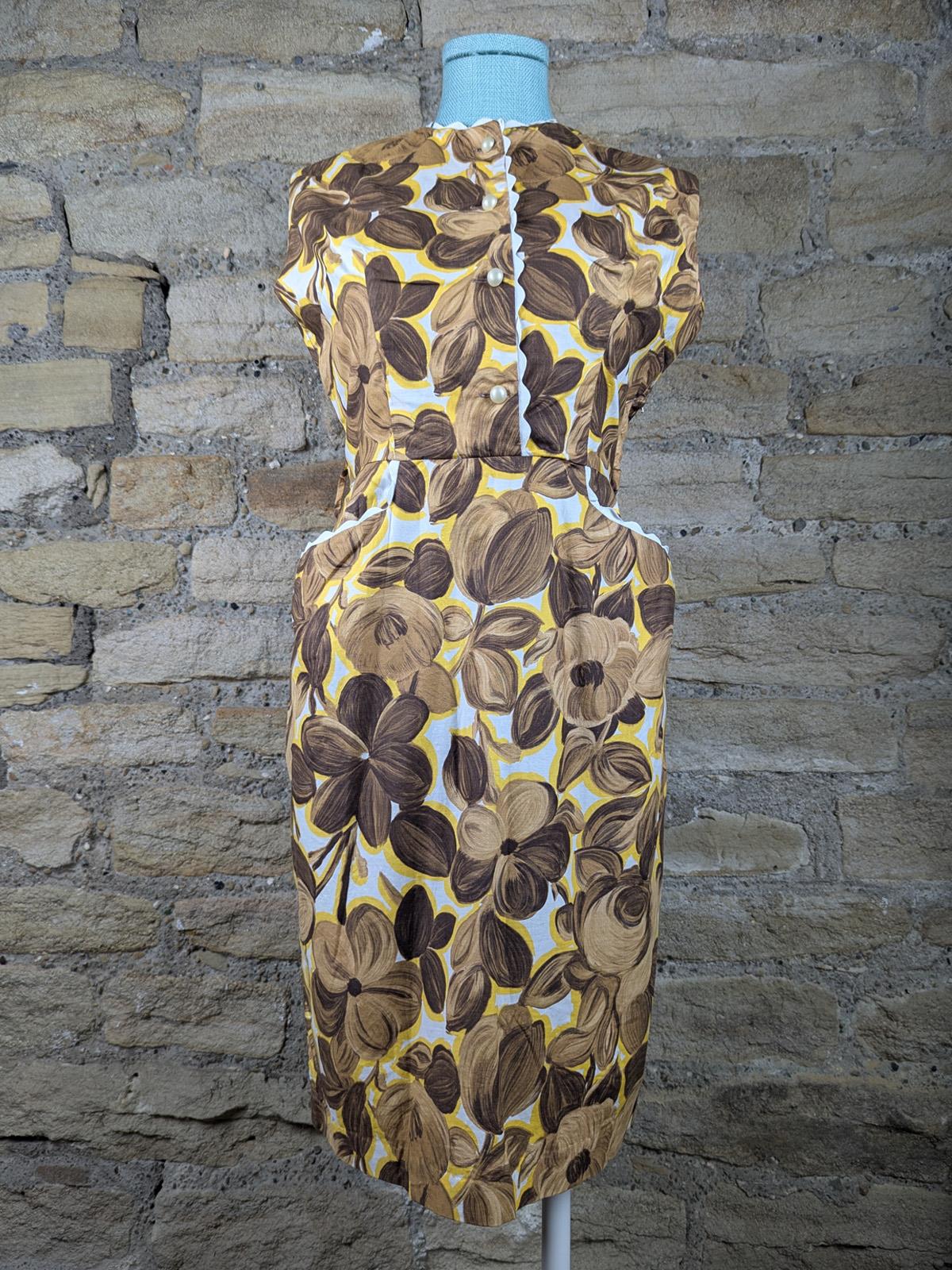 1950s Brown Floral Ric Rac Trim Vintage Dress