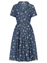 1950s Vintage Look Blue Floral Shirtwaister Dress