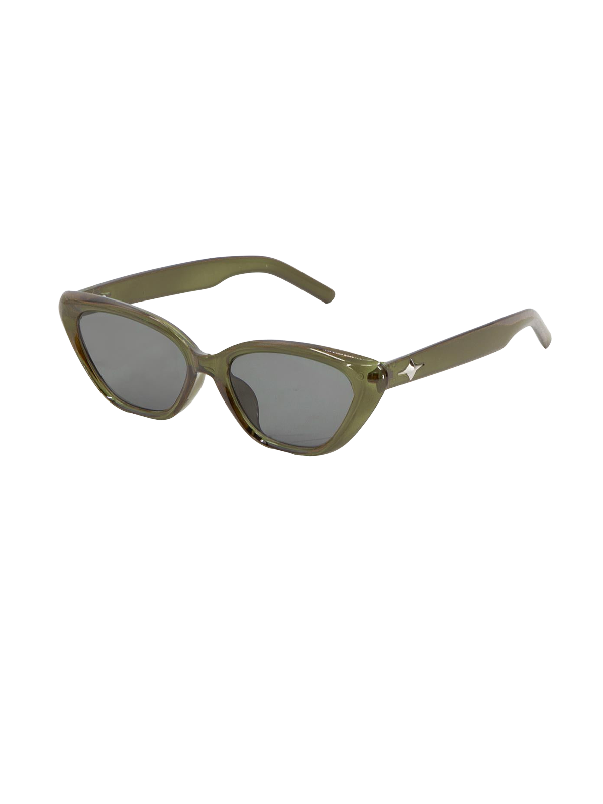 Vintage style rounded catseye sunglasses with a translucent green frame with a star detail on the arm. A luxurious style, perfect for your vintage inspired outfits.