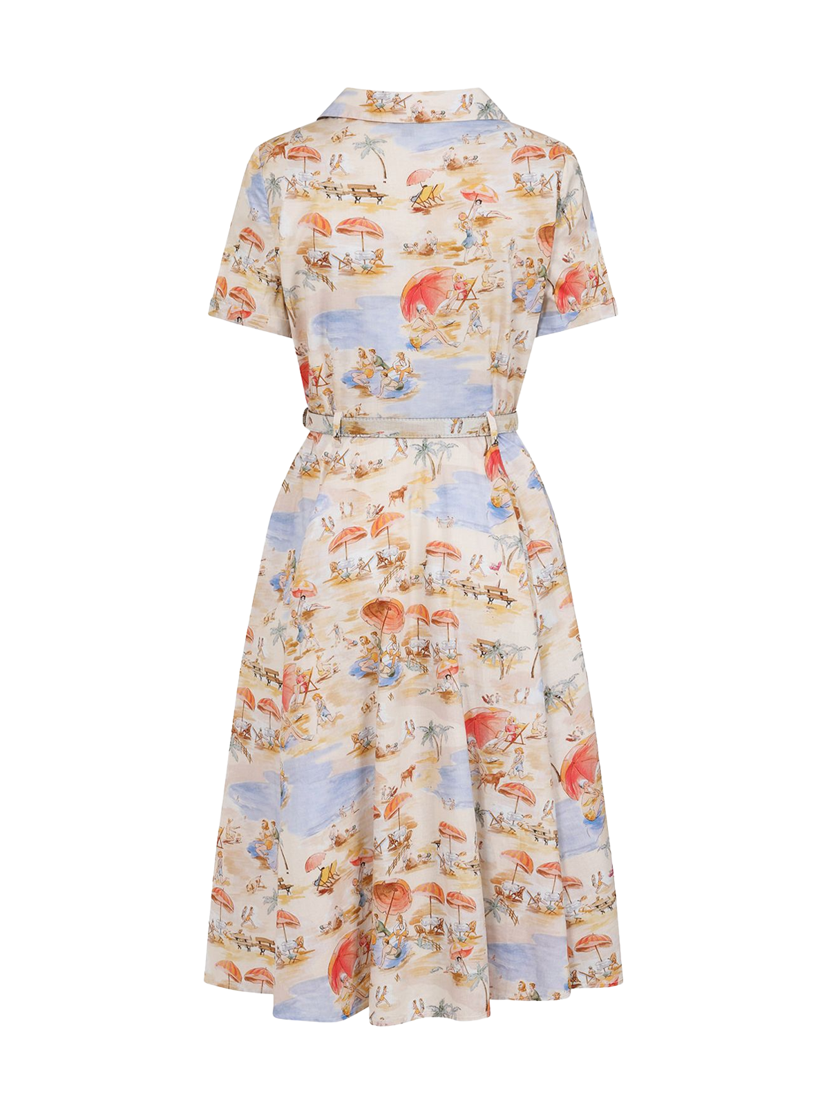 1950s Style Beach Shirtwaist Swing Dress - Cream