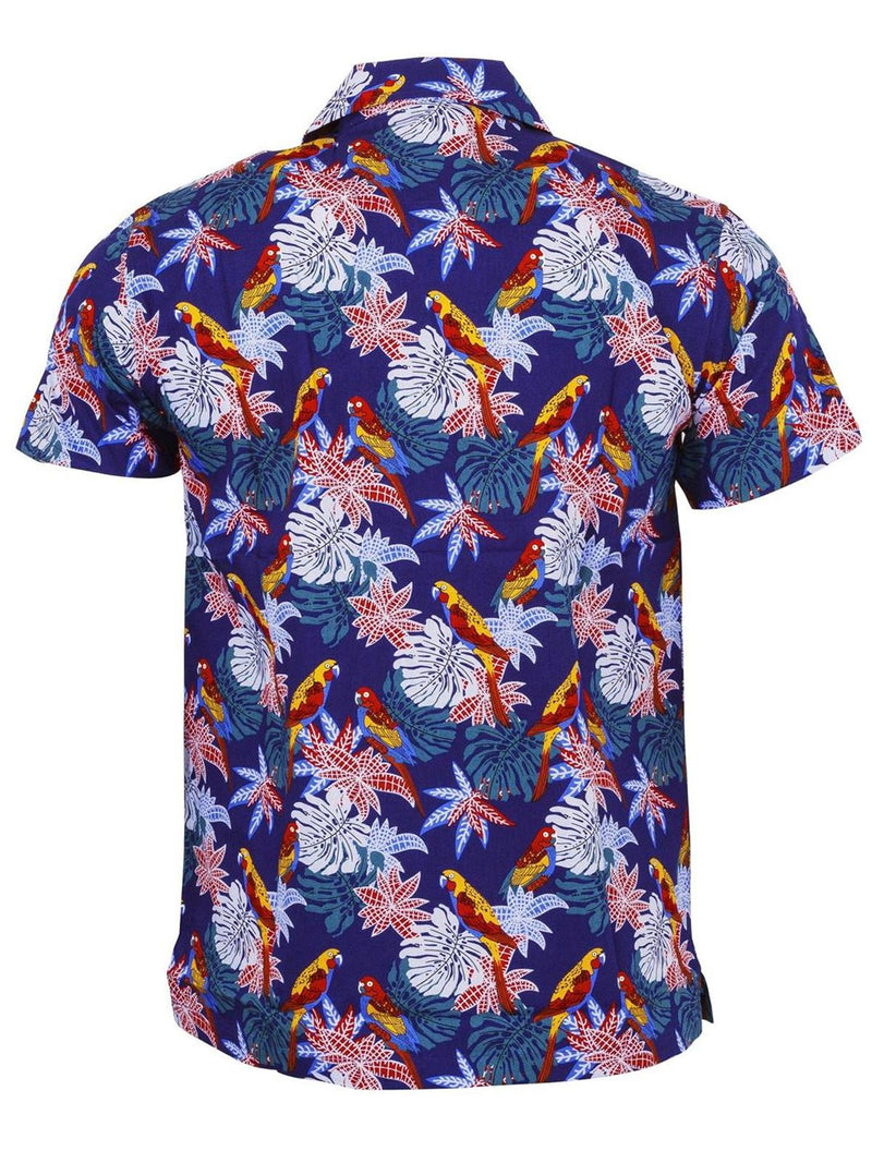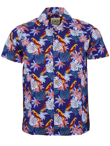 1950s Style Blue Parrot Print Hawaiian Shirt