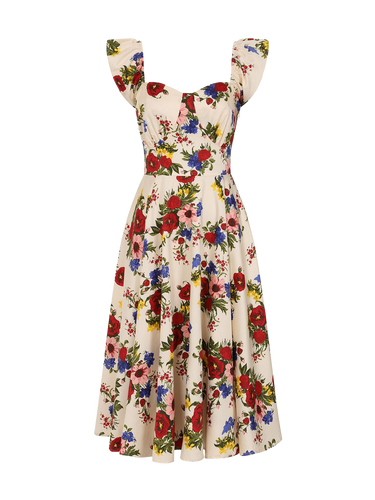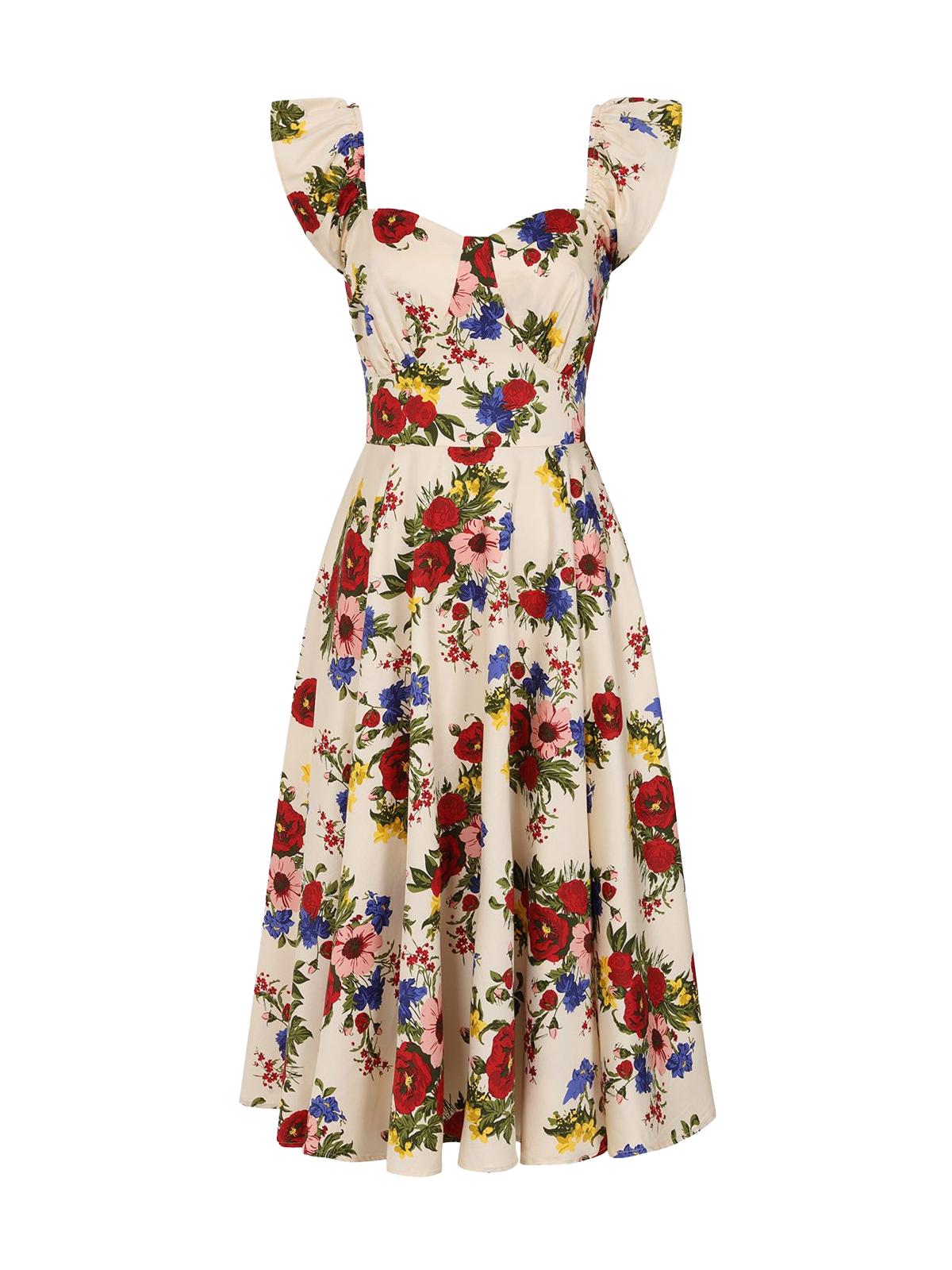 1950s Style Sweetheart Floral Swing Dress - Cream