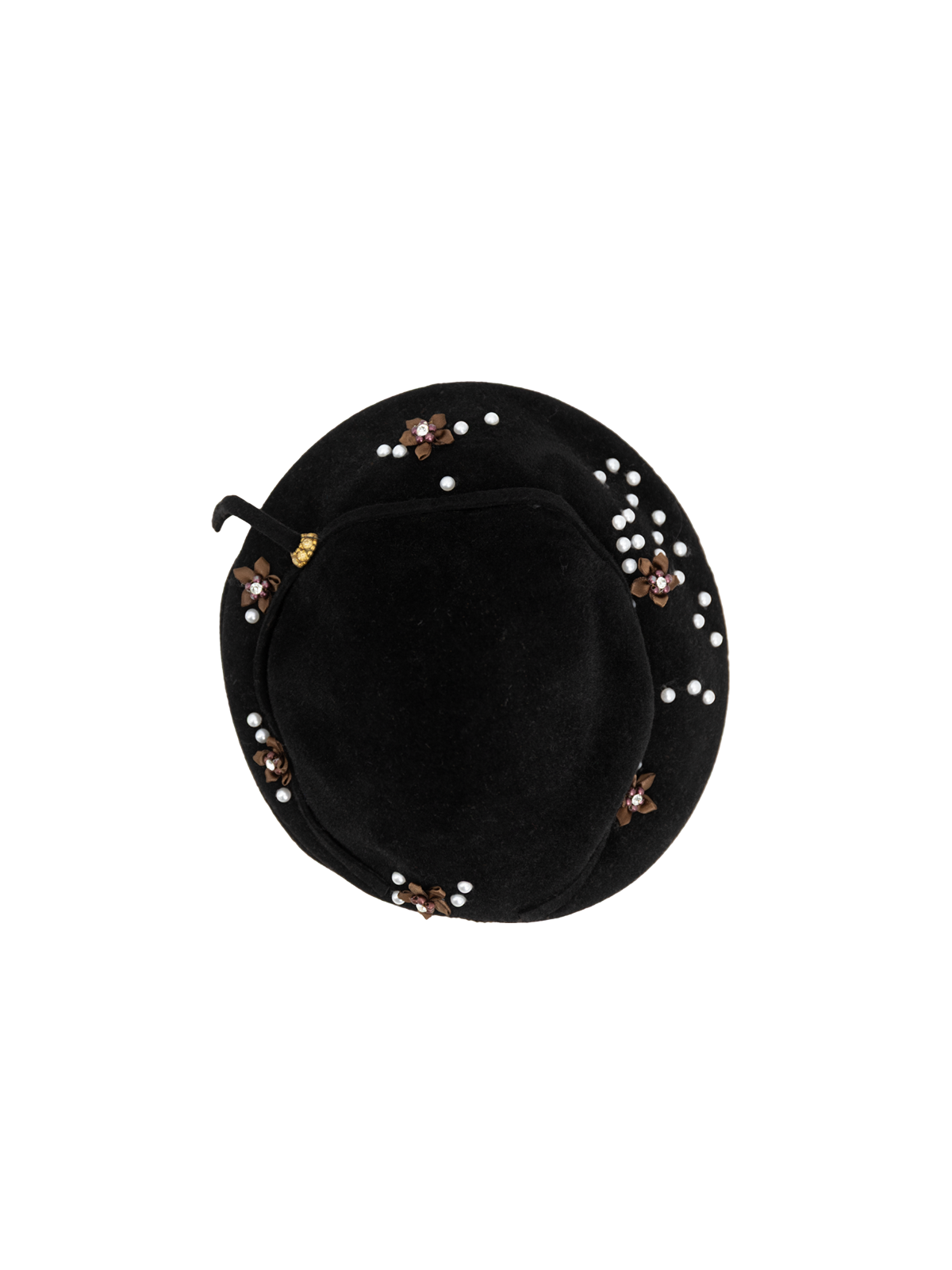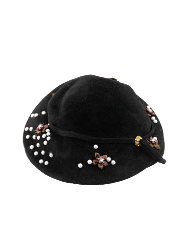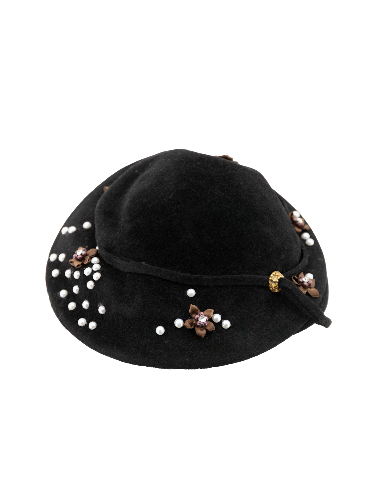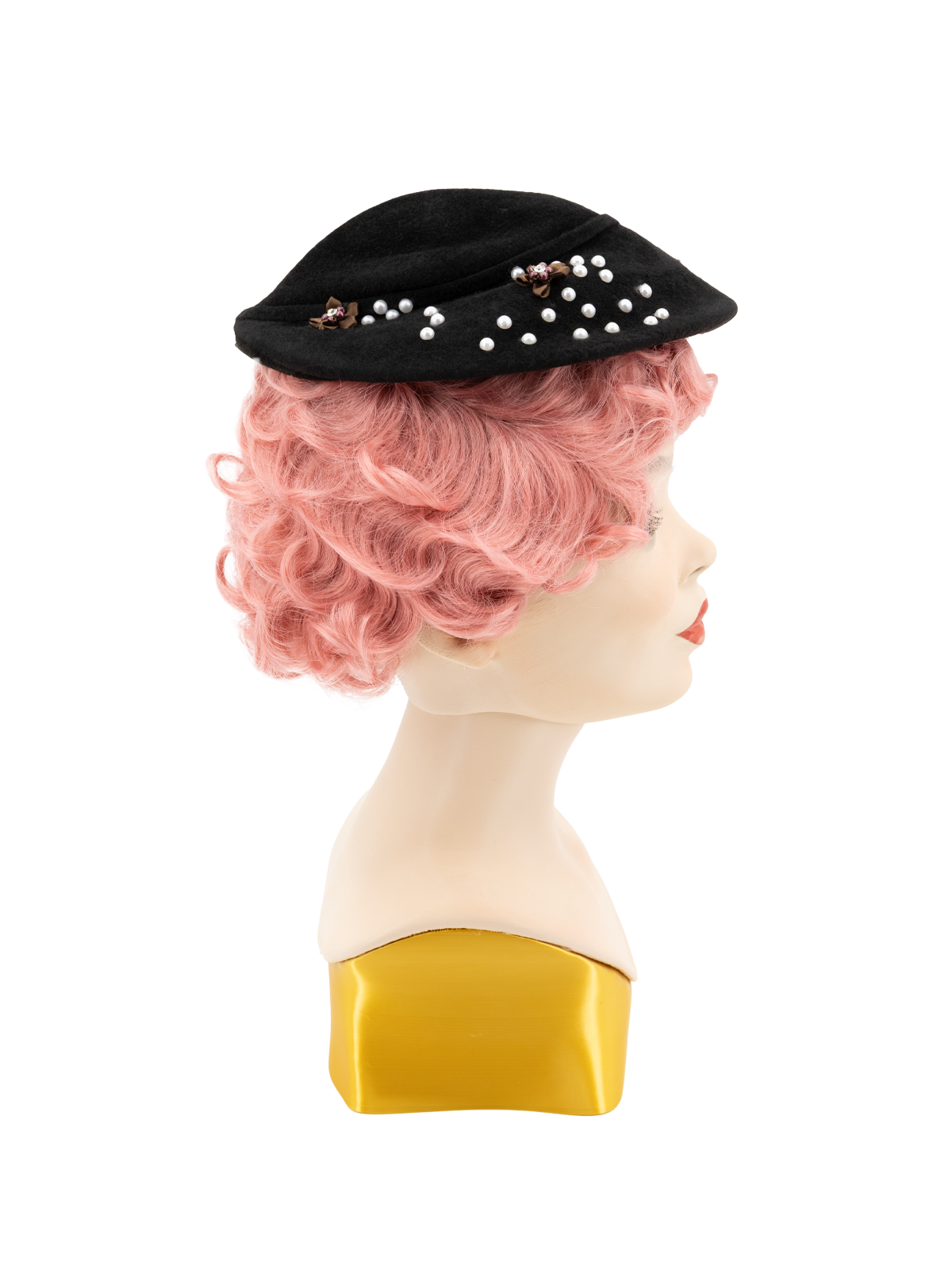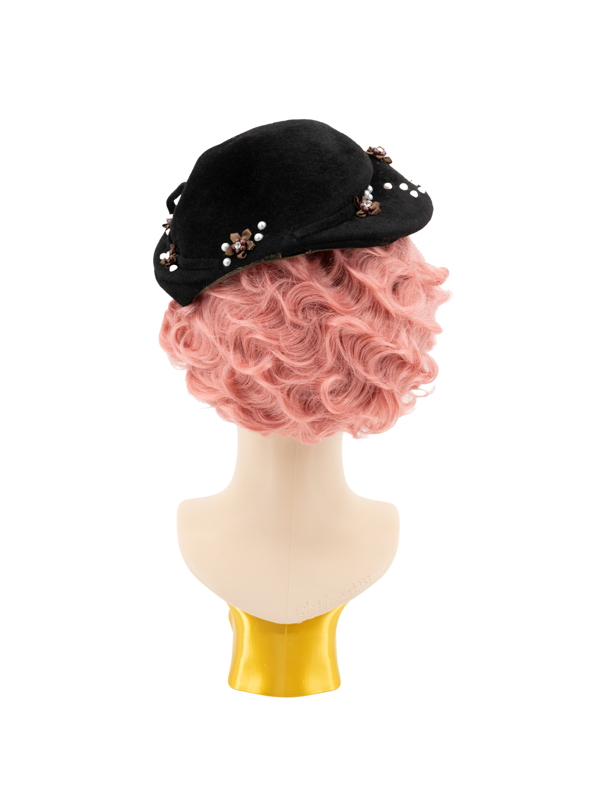 1950s Velour Faux Pearl Decor Occasion Hat - Black