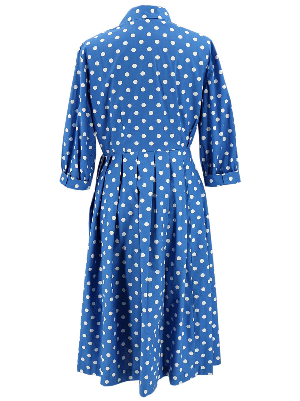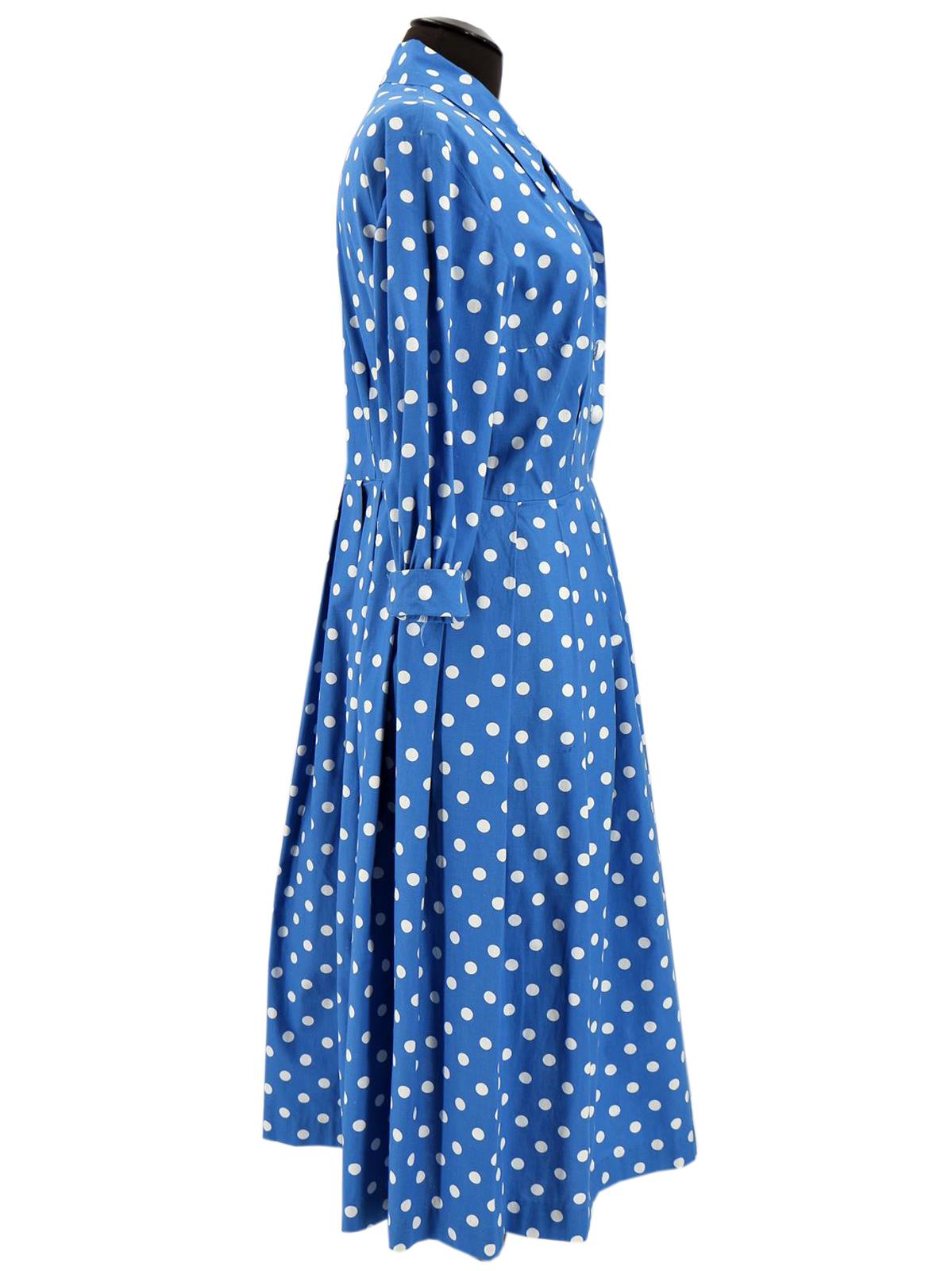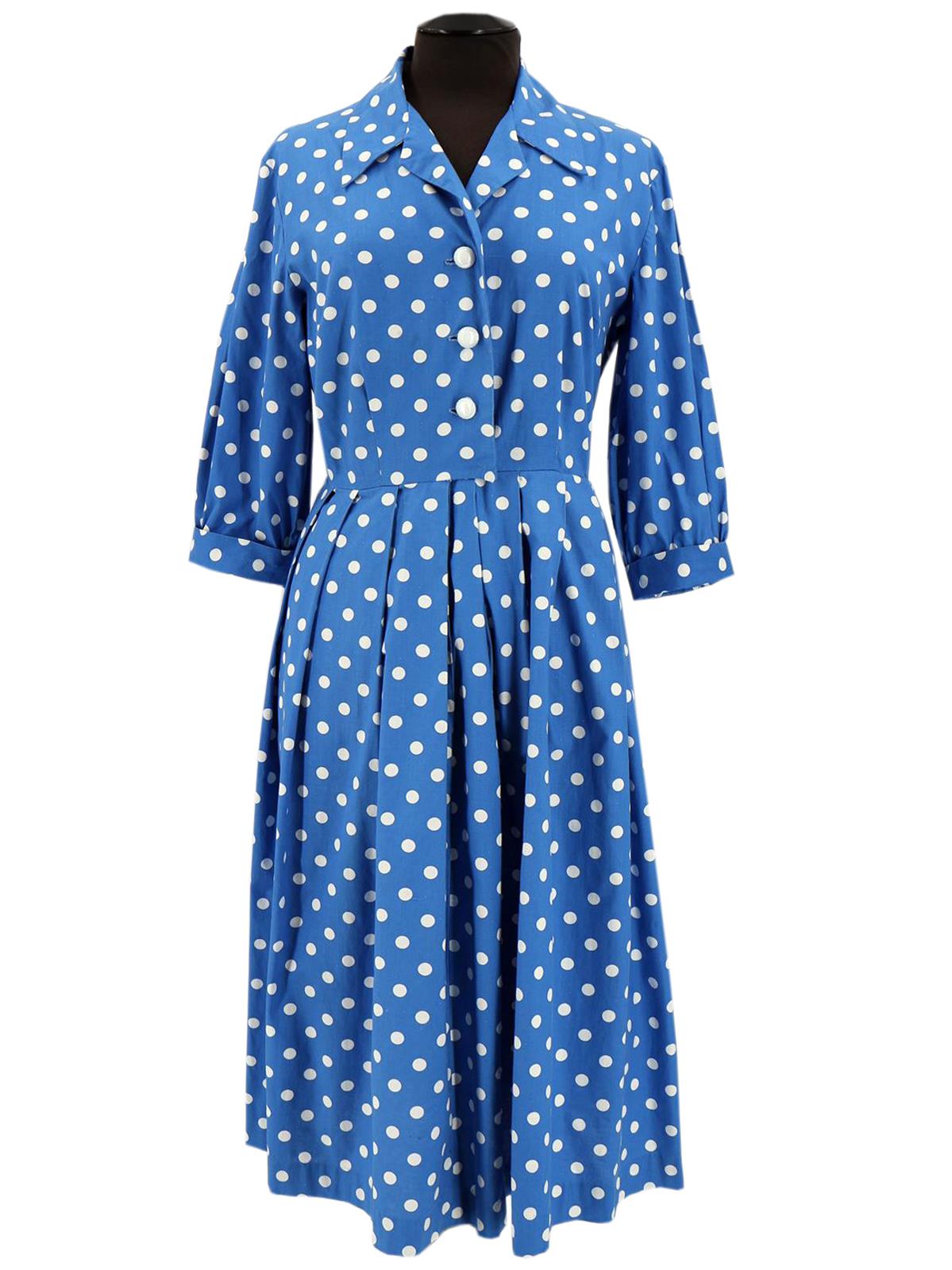 1950s Vintage Blue Polka Dot Cotton Tea Dress