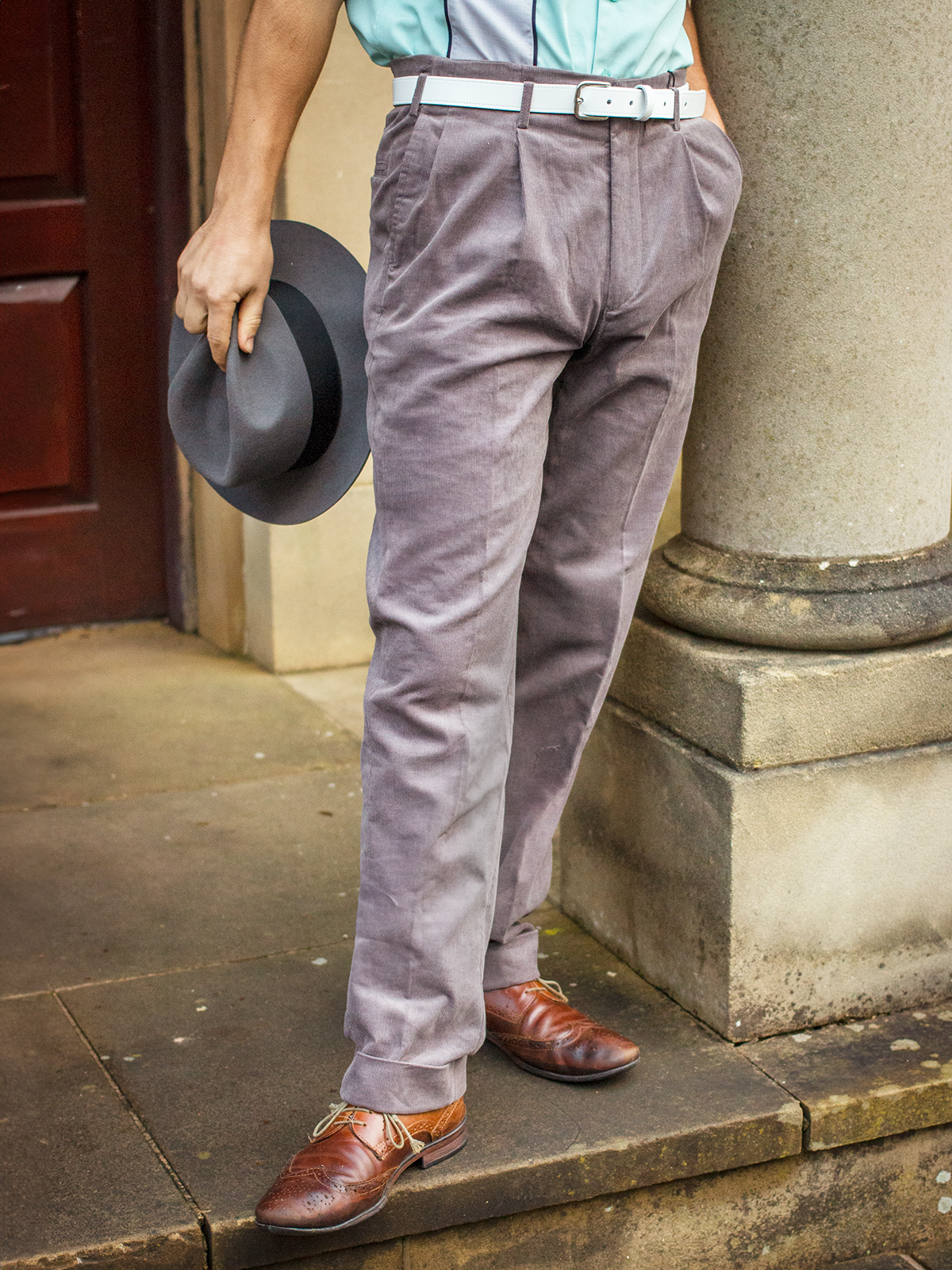 If you love fifties men's fashion, you will appreciate these pleated front 'Chuck' peg trousers, now available in a lightweight grey corduroy fabric.