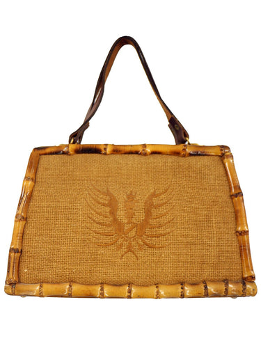 1950s Vintage Woven Bamboo Tiki Style Bag