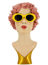 Vintage style oval Modette sunnies in bright yellow. They will compliment clothing from the swinging sixties.