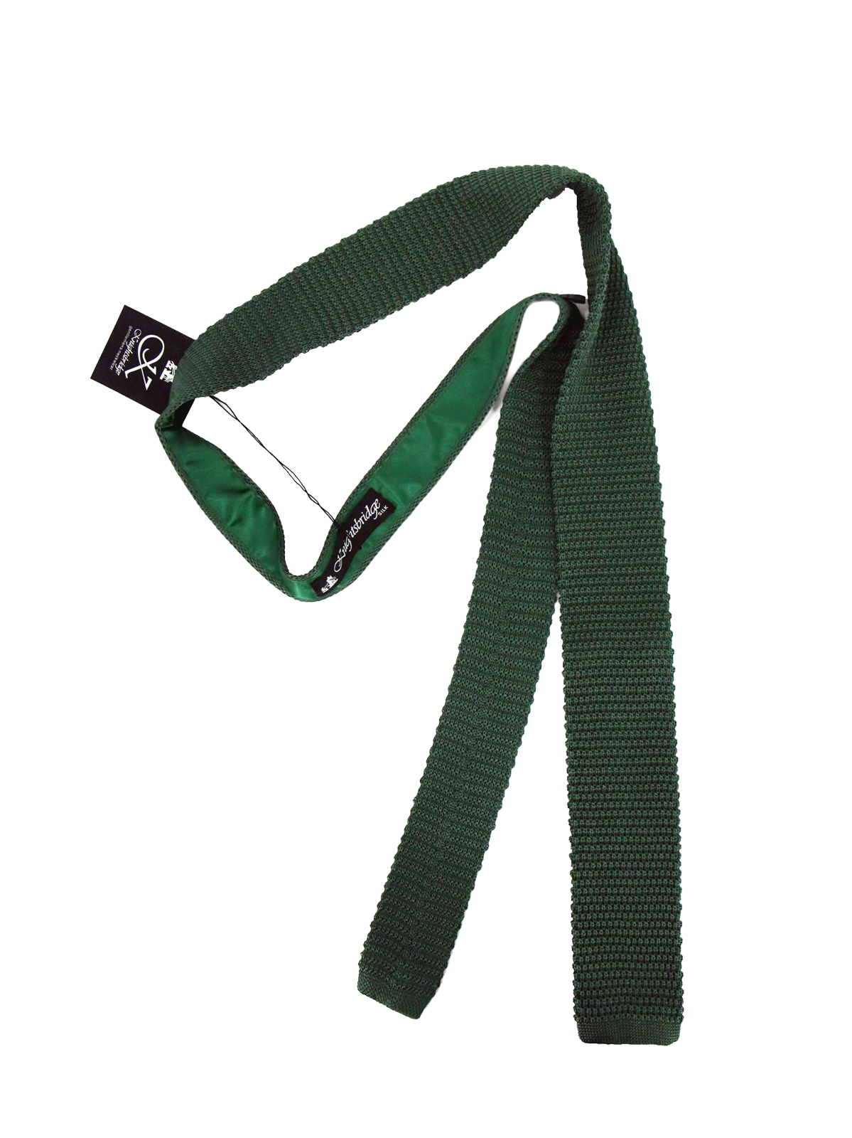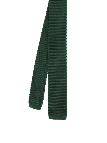 A 1960s inspired slim tie in knitted pure silk, presented in a rich forest green shade. Finished with a satin lining at the back neck for comfort and durability. Made in England from high quality silk.
