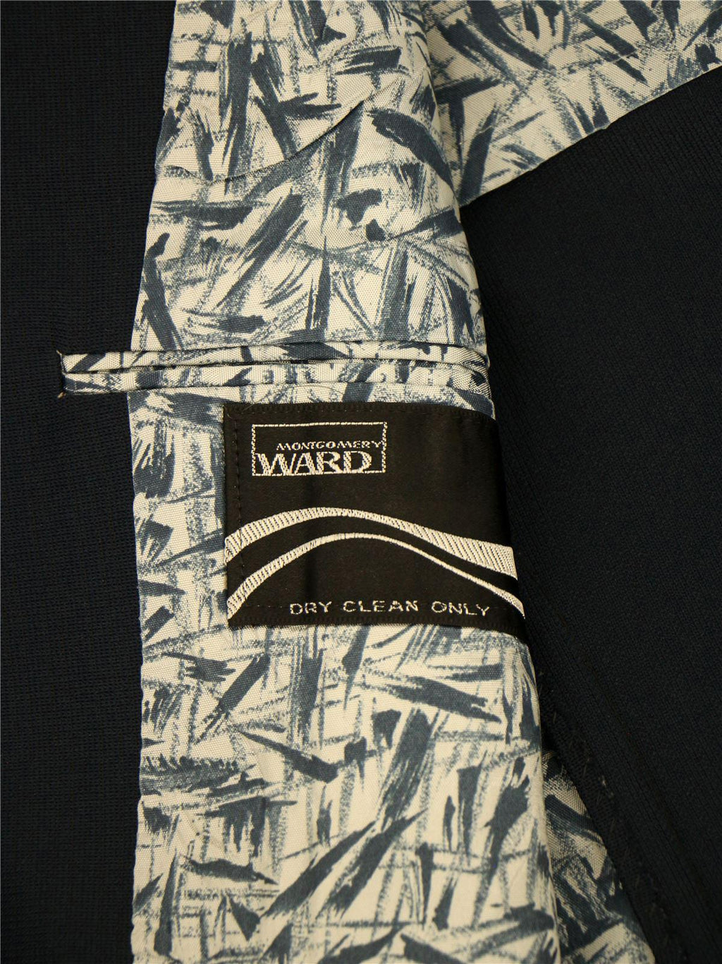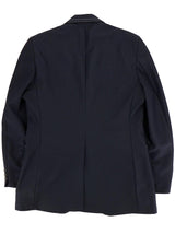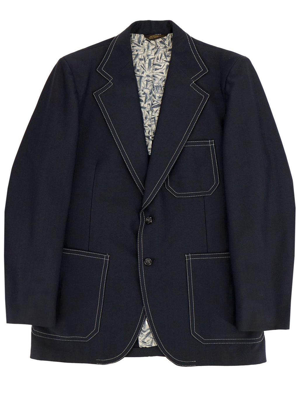 Navy blazer jacket from the 1970s, white contrast stitching on the lapels and pockets.