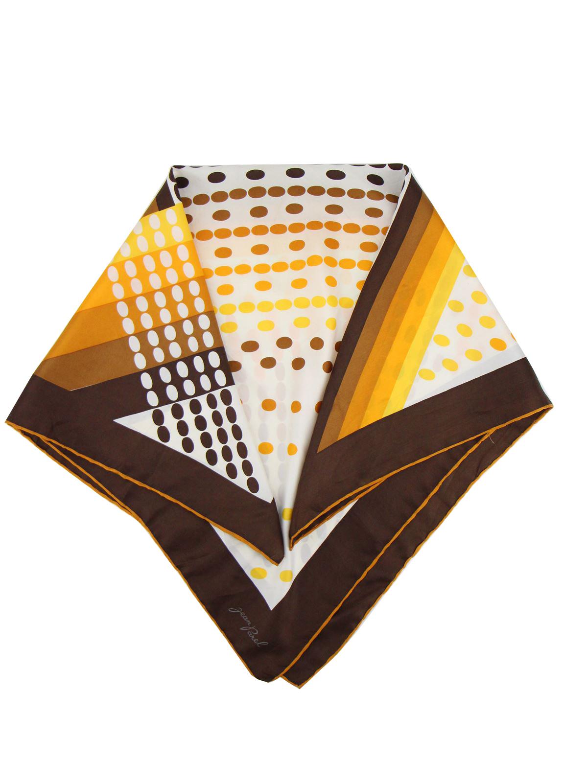 Striking vintage scarf with spots and stripes in a typical seventies colour scheme.