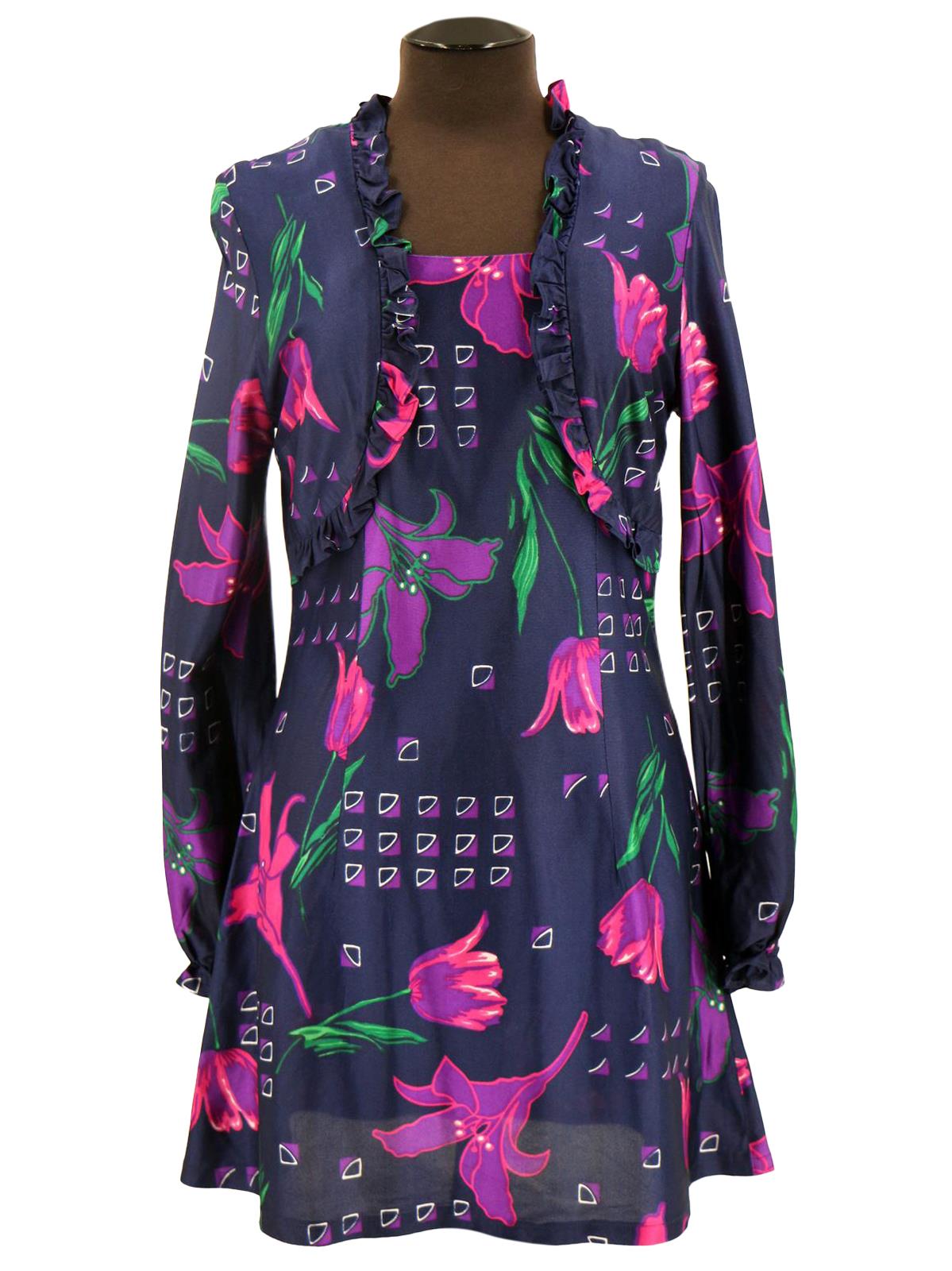 1970s Vintage Purple Faux Bolero Dress