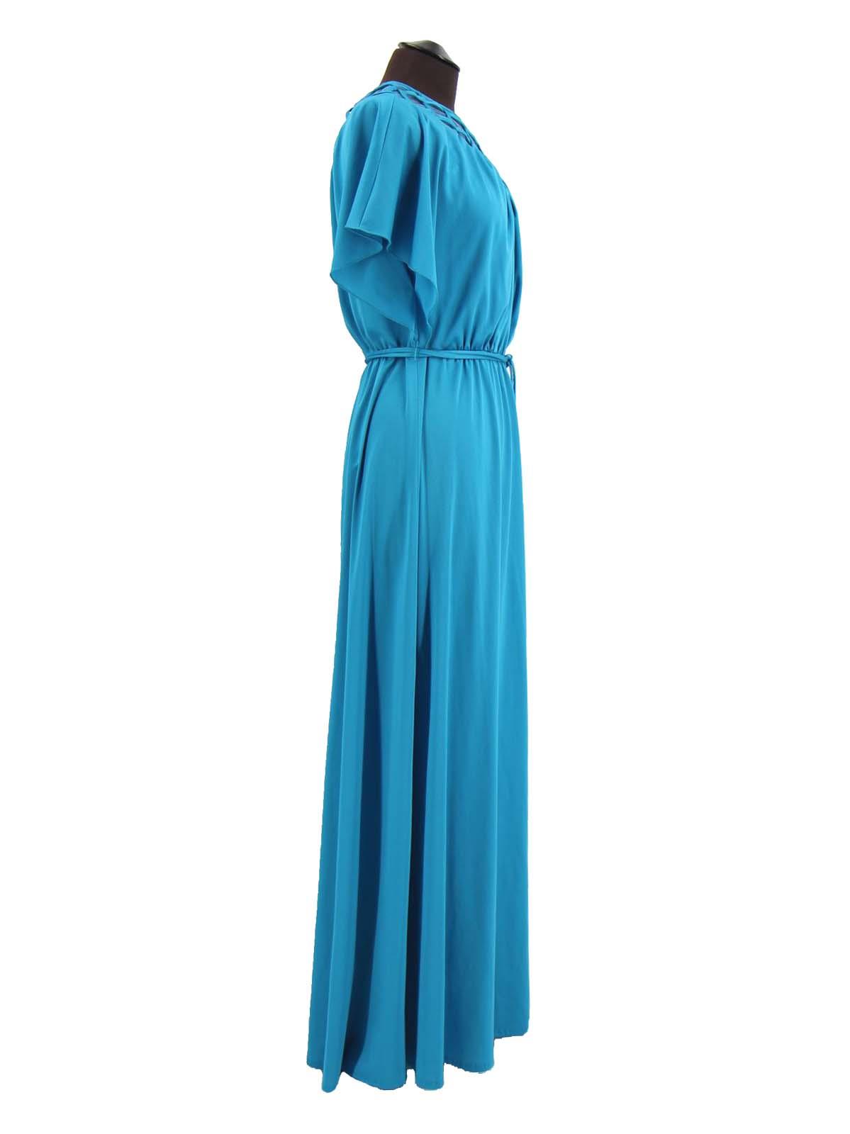 This seventies maxi comes with a matching fabric belt that is trimmed with gold beads. Fastened with an invisible zipper at the back, and an additional hook and eye closure at the back of the neck.