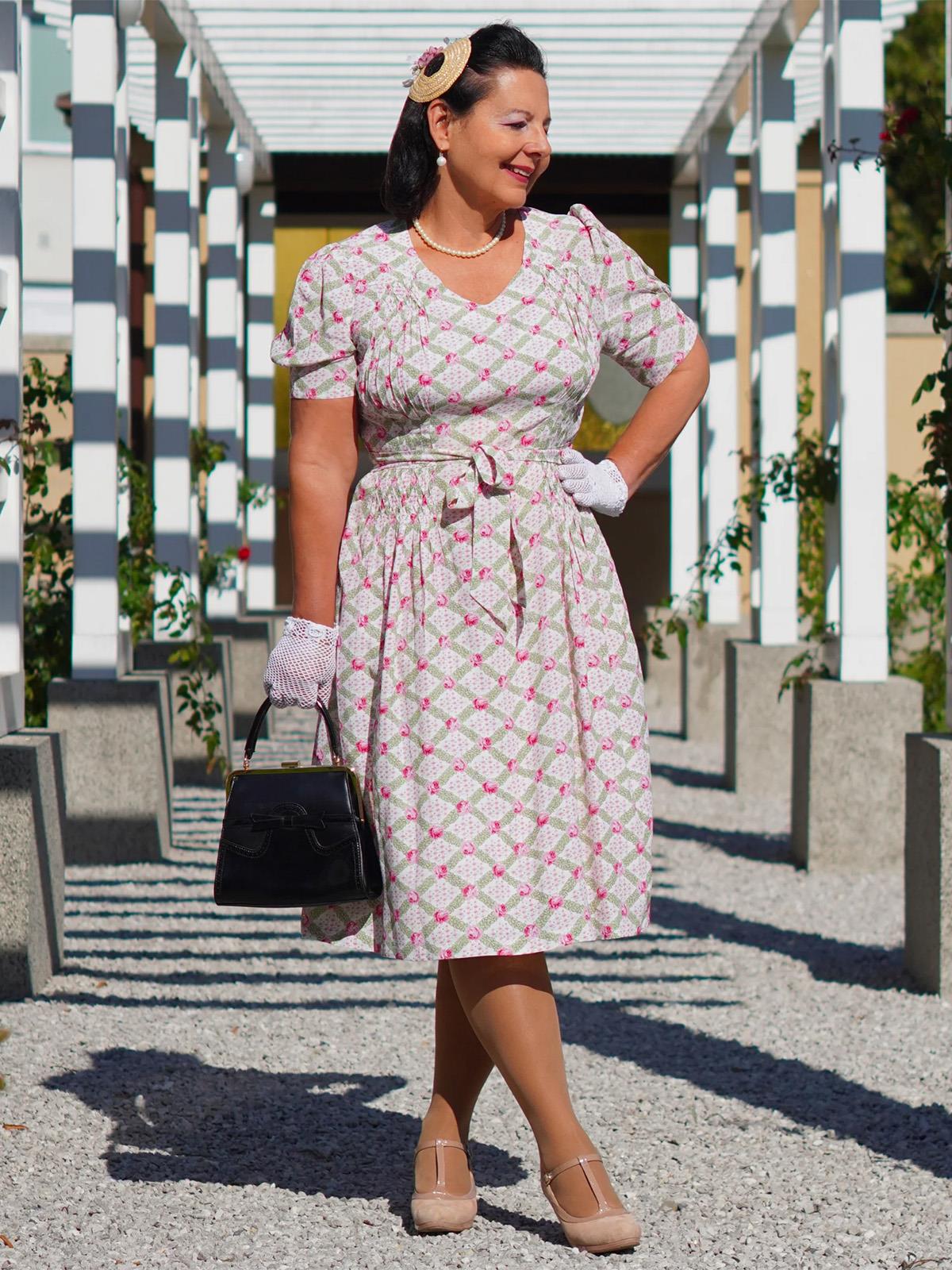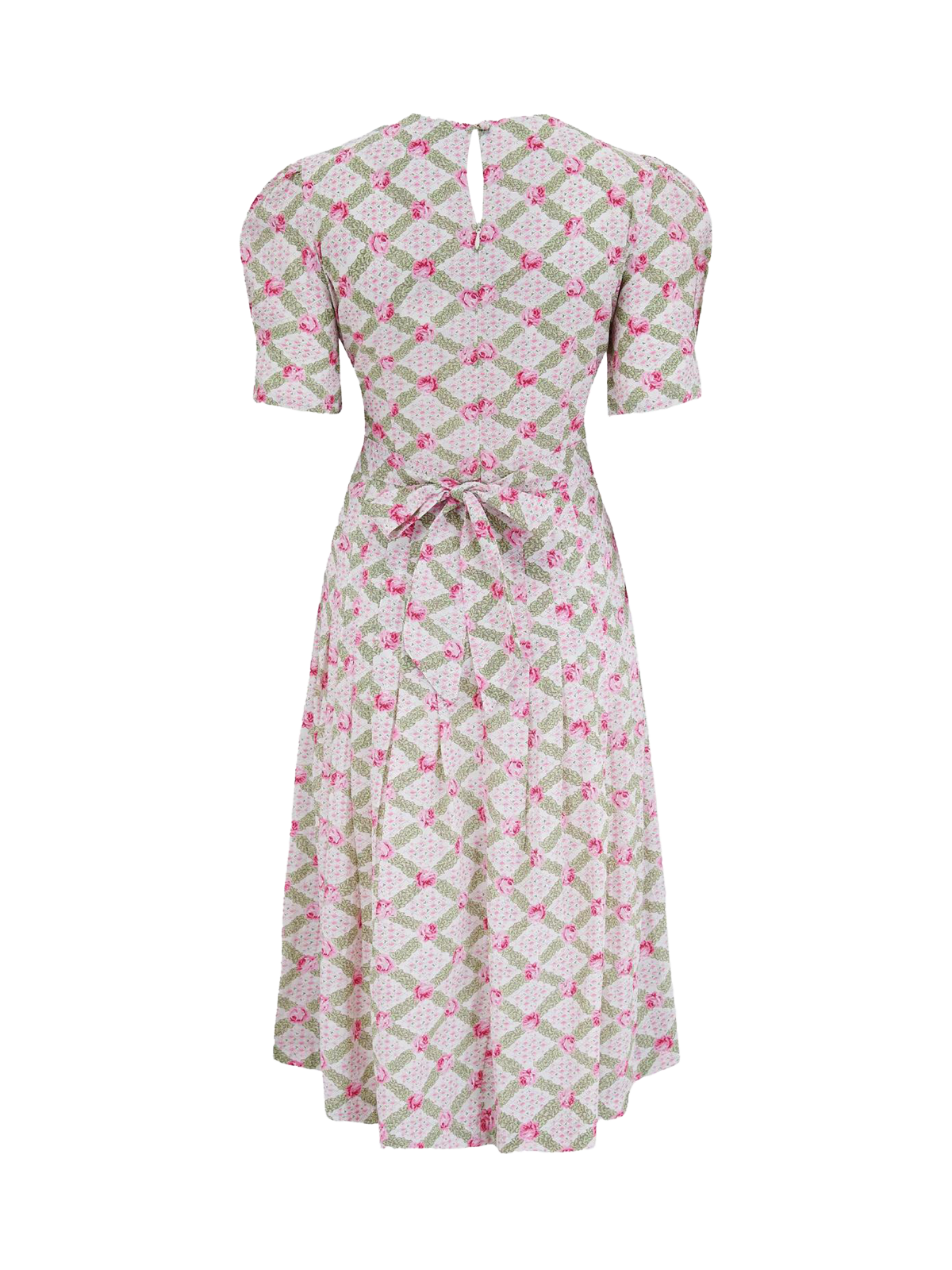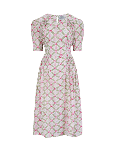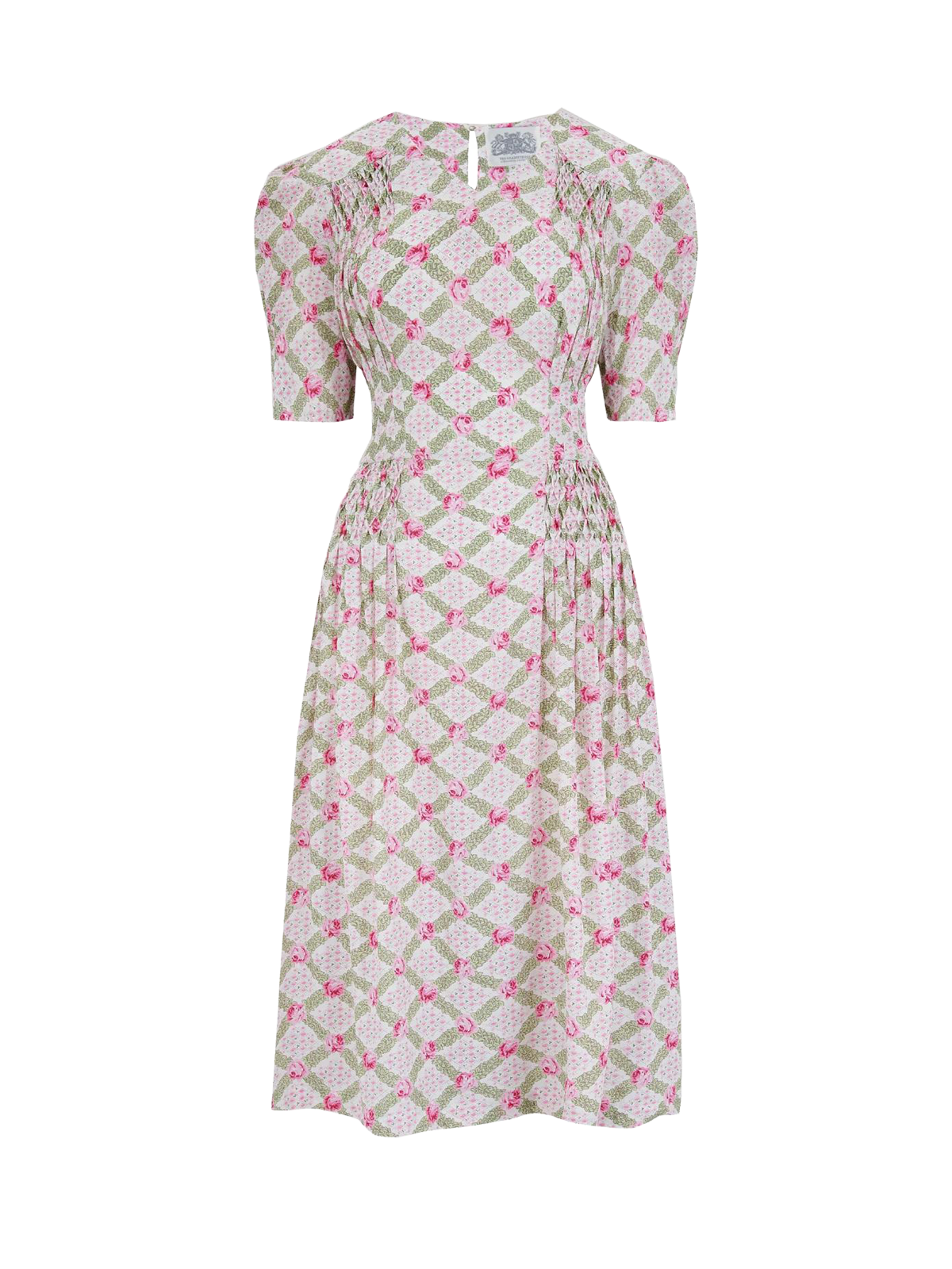 40s Look Bloomsbury Rose Trellis Smocked Dress