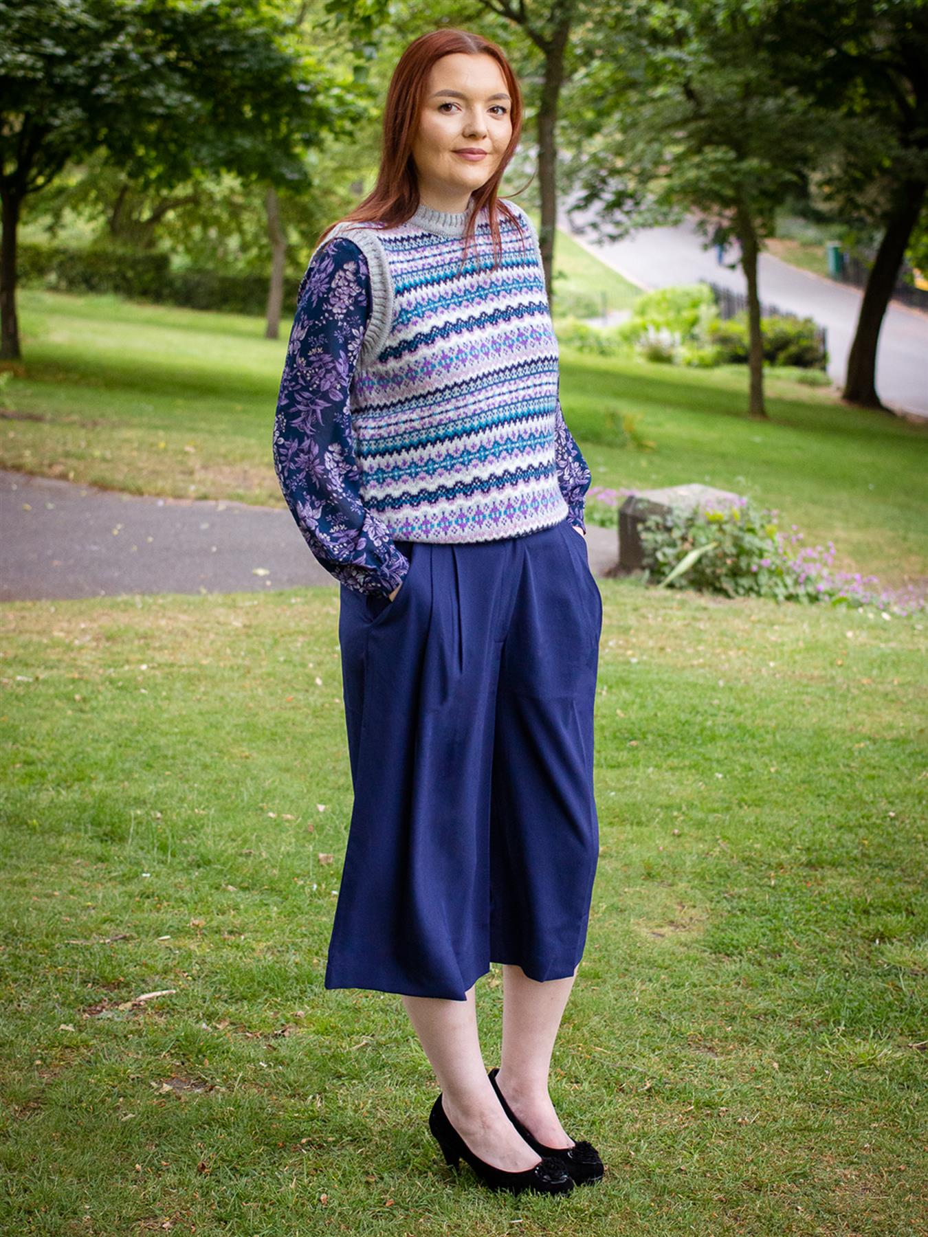 A versatile vintage style cropped trouser which look great dressed up with a satin forties look blouse or casual with a nautical Tee.