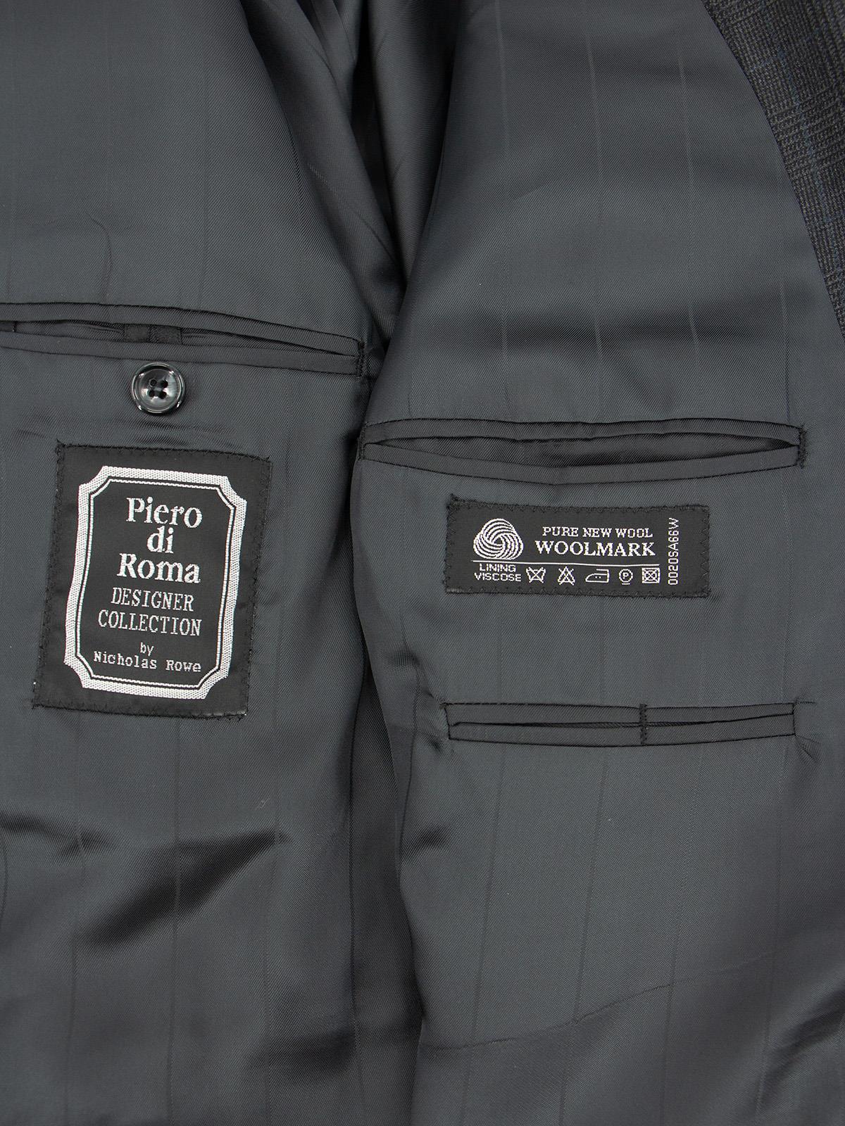 Authentic deadstock vintage suit in a subtle blue and grey check, offering a sharp midcentury silhouette with refined tailoring details.
