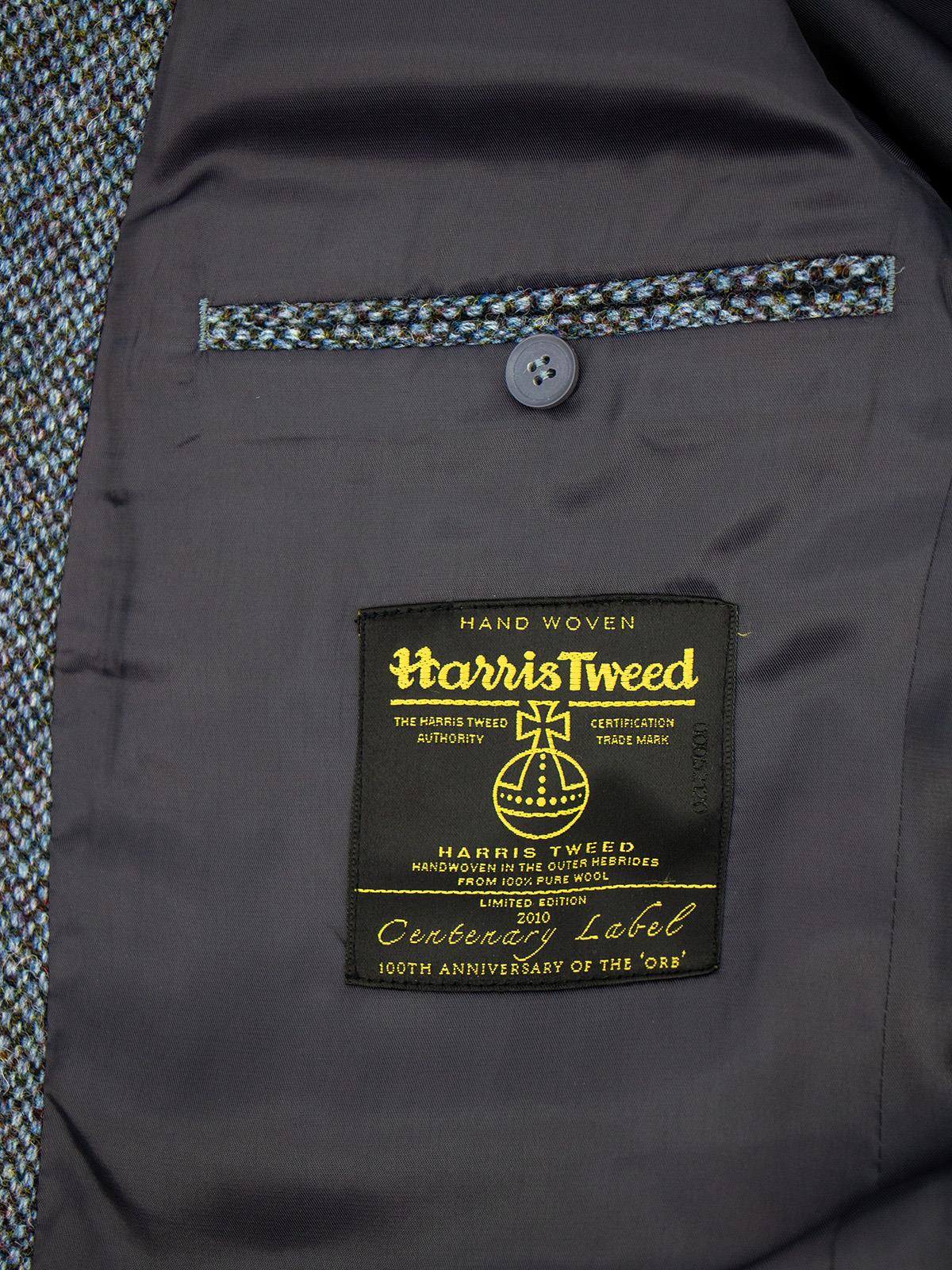 A beautiful centenary label, Harris Tweed wool jacket. This unusual blue-grey colour palette in a classic Donegal weave, is a quality vintage example to have as part of your wardrobe.