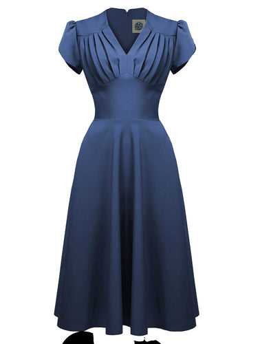 Airforce Blue 1940s Vintage Inspired Swing Dress