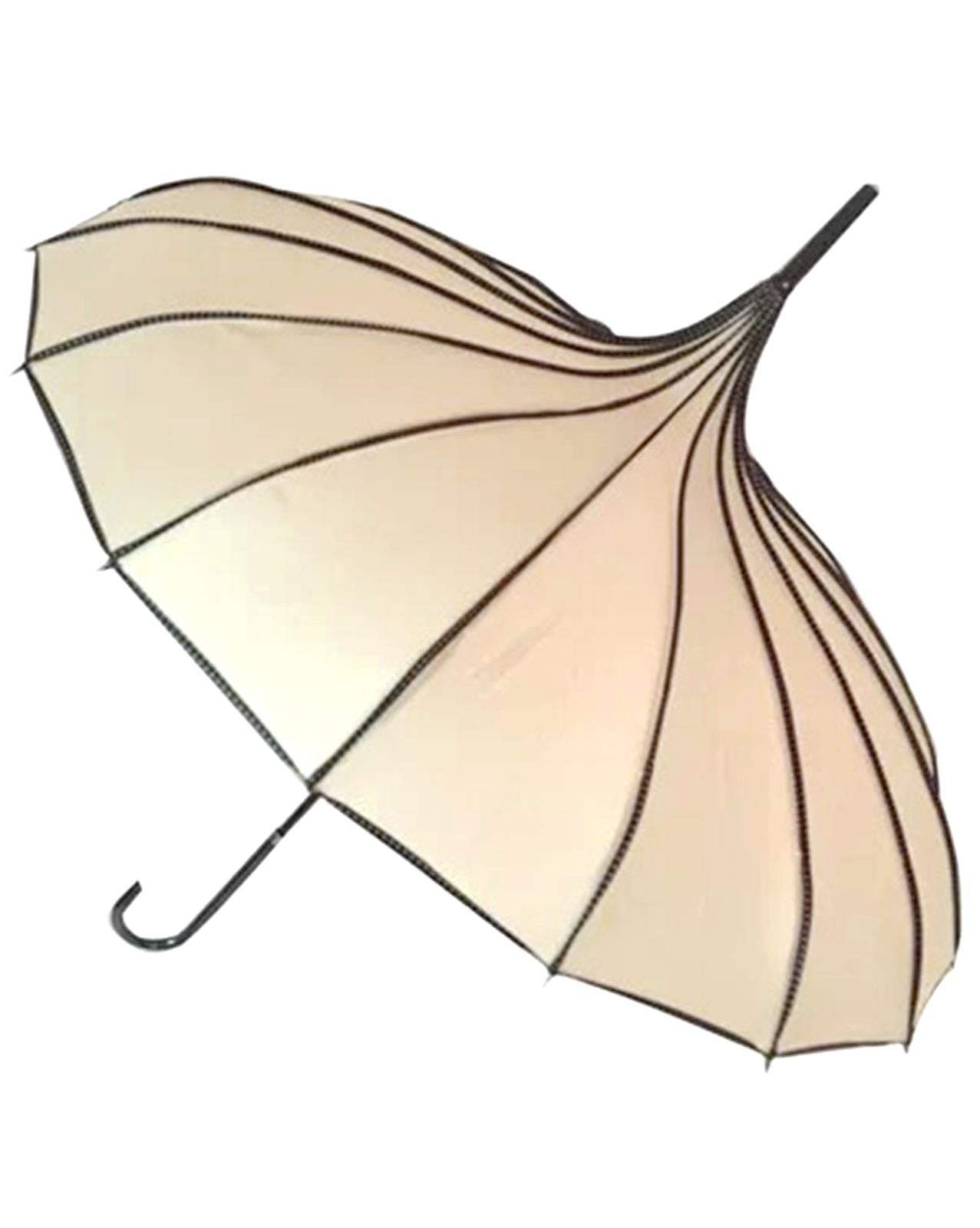 Beige Vintage Pagoda Style Polka Dot Trim Umbrella