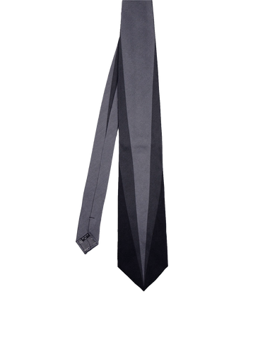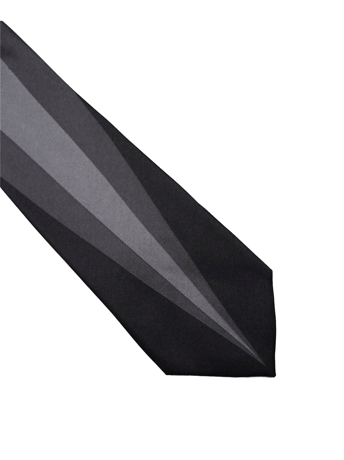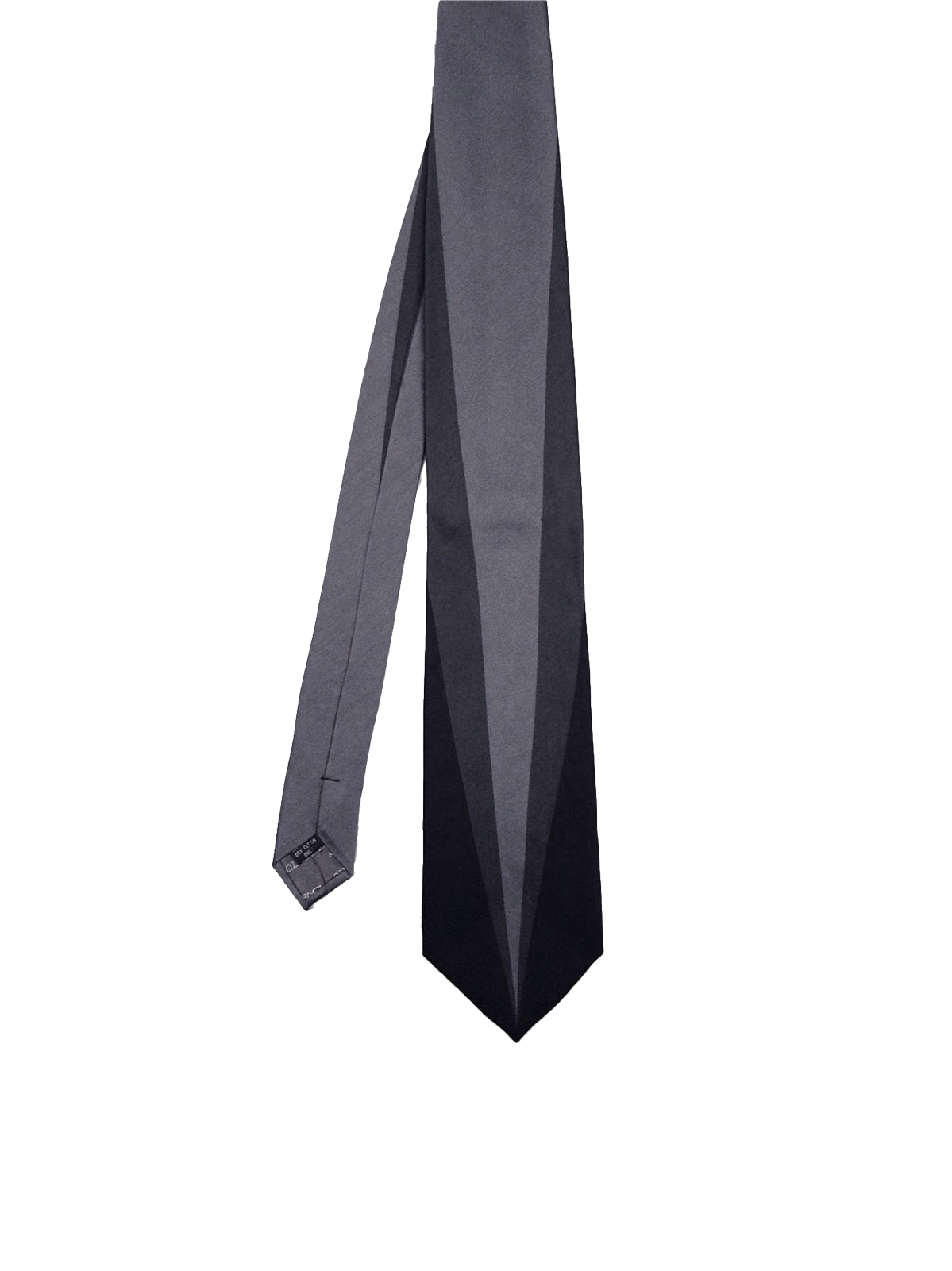 A 1940s inspired silk tie featuring a bold black and grey arrowhead design. This forties style accessory adds a distinctive vintage flair, perfect for both formal and period inspired looks.