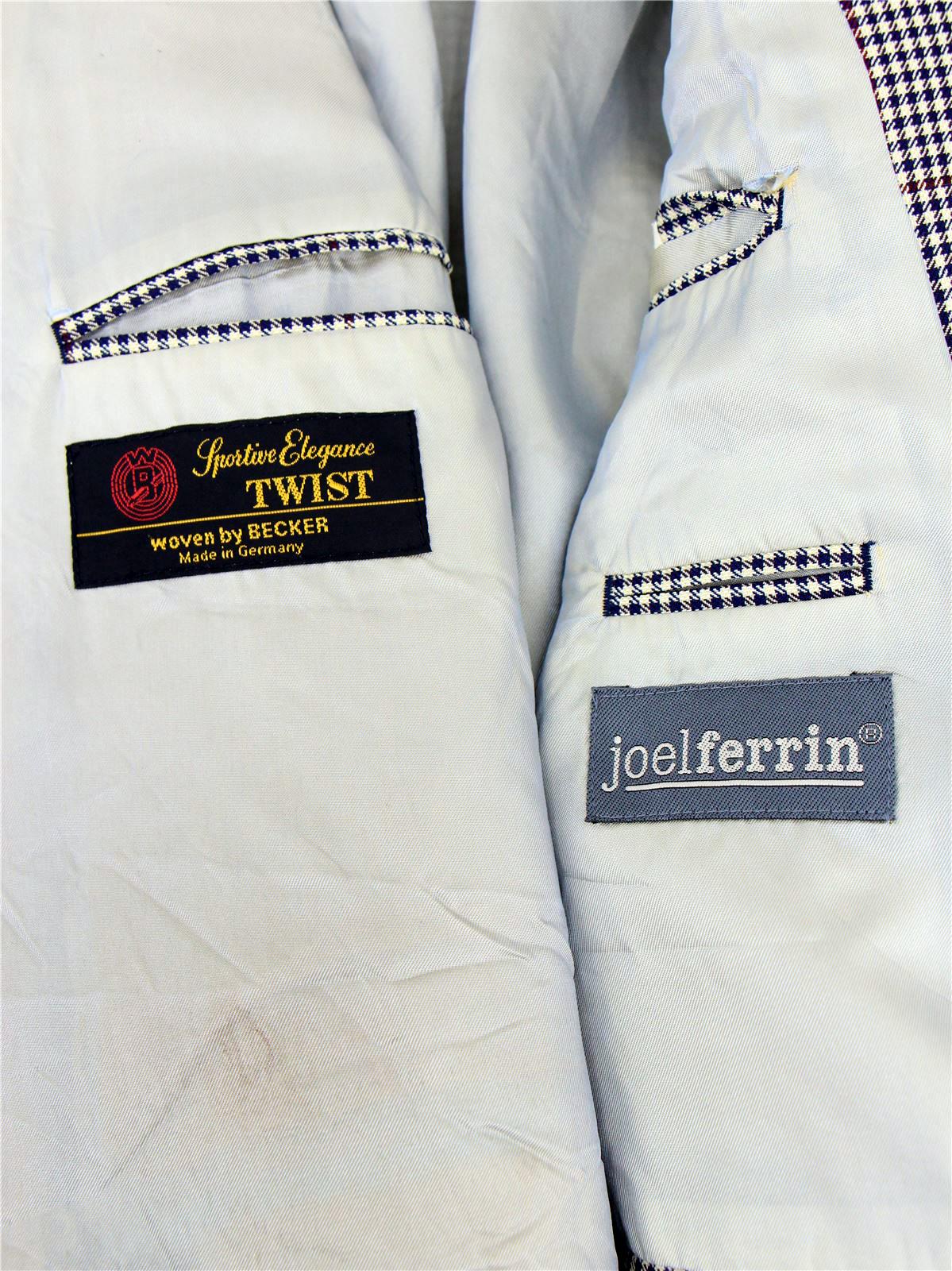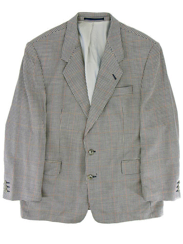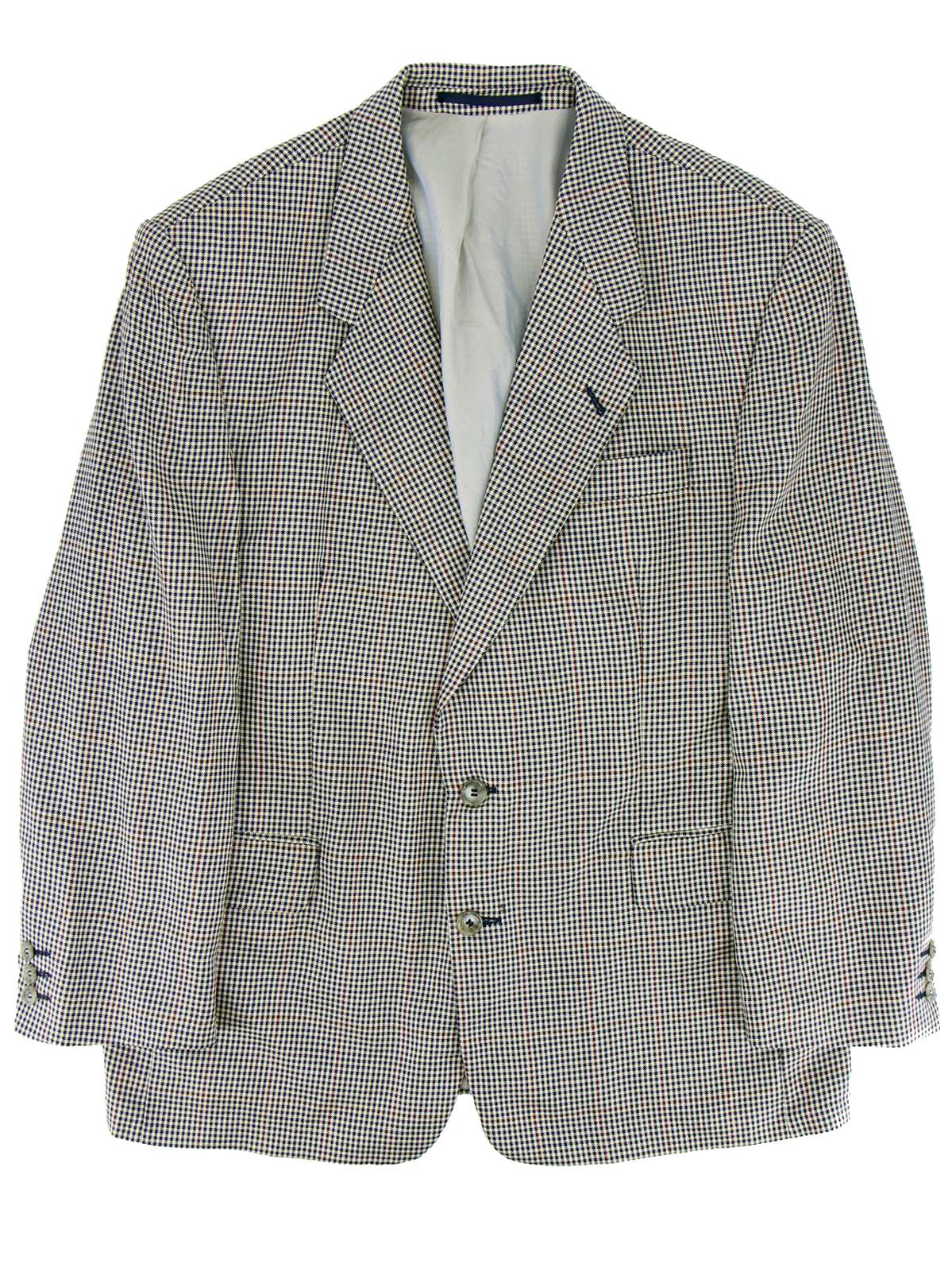 This lightweight wool jacket is a timeless choice for any gentleman's vintage wardrobe. A black and white gingham pattern with brown or deep red accent stripes.