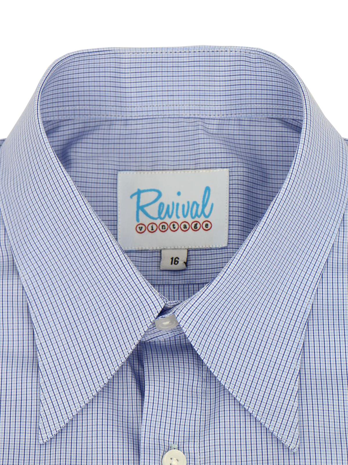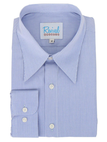 Blue Fine Check Vintage Forties Spearpoint Collar Shirt