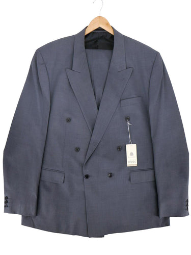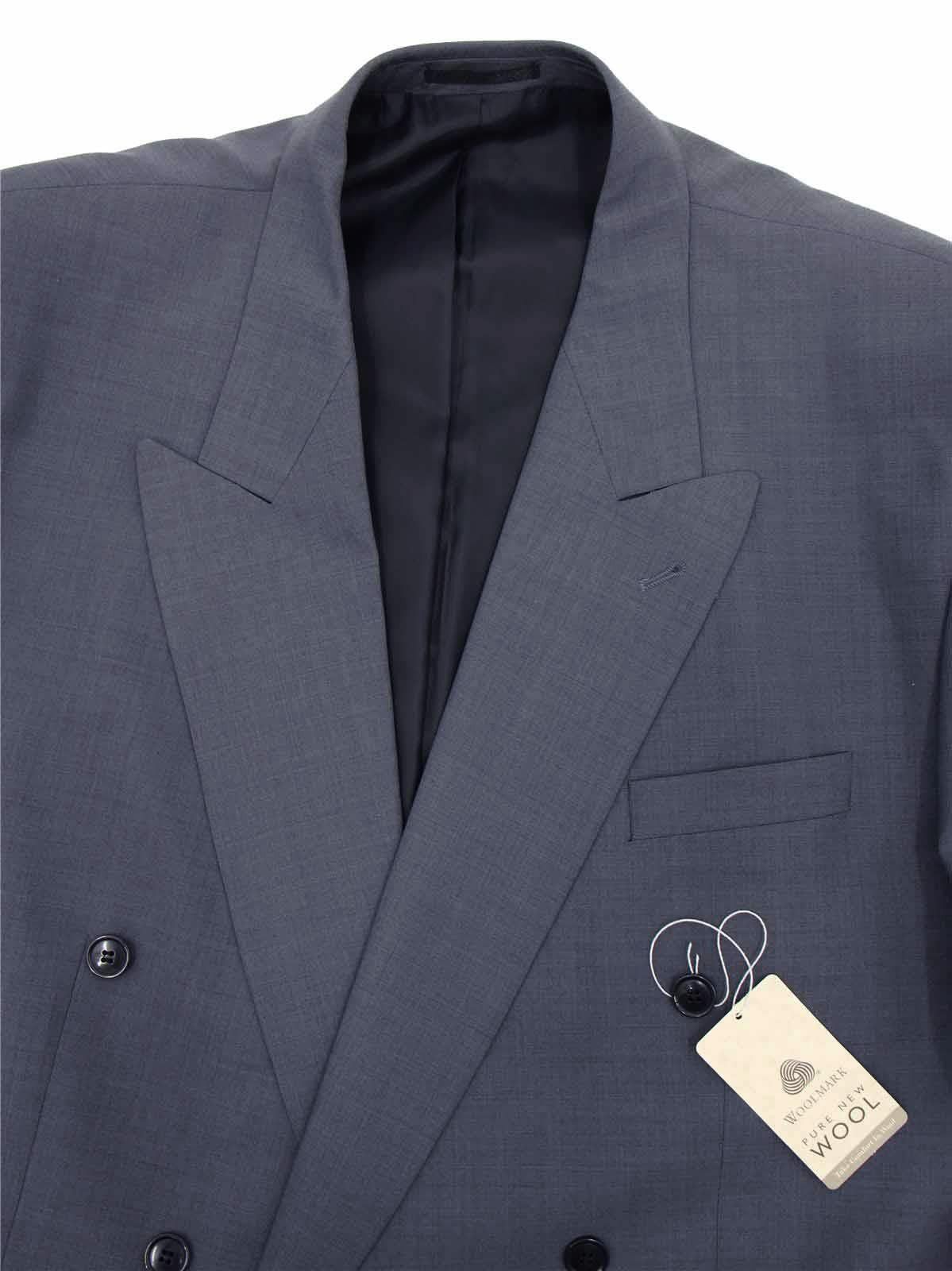 This vintage deadstock tailored suit is realised in a cool blue-toned grey suit cloth, made of pure wool.