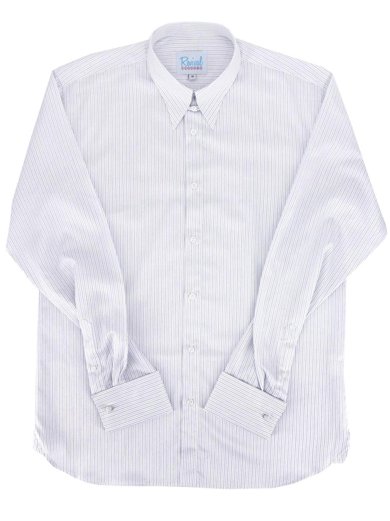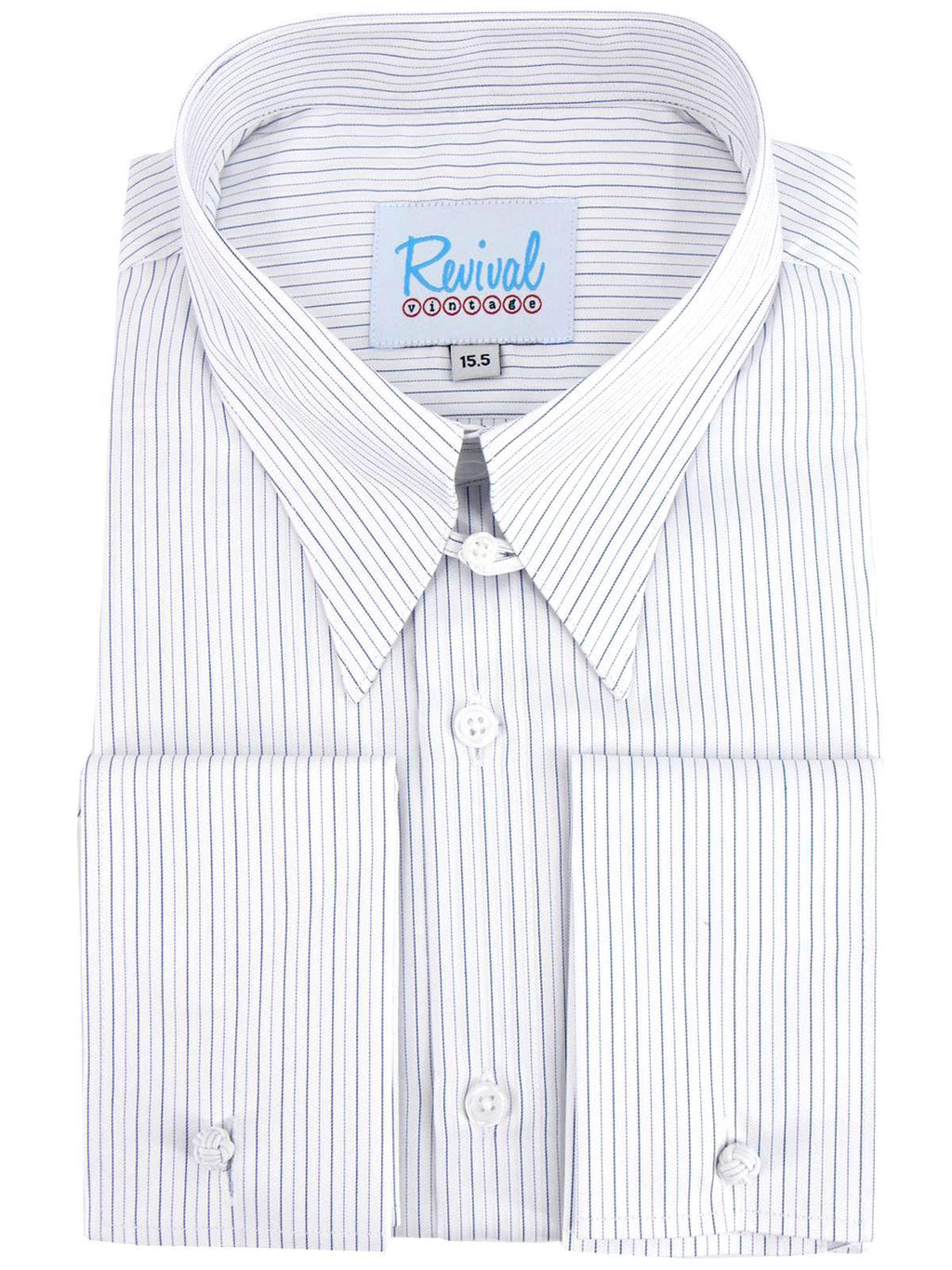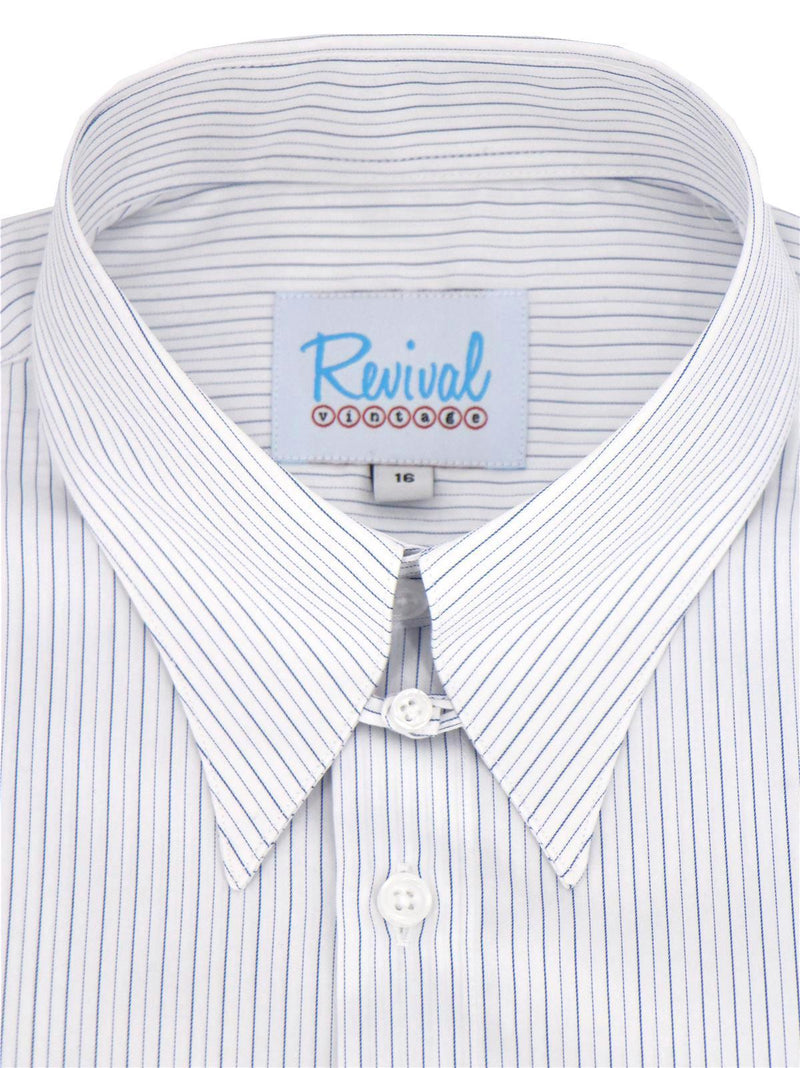 1940s Style Vintage Spearpoint Shirt with Tab Collar - Blue Lockwood Stripe