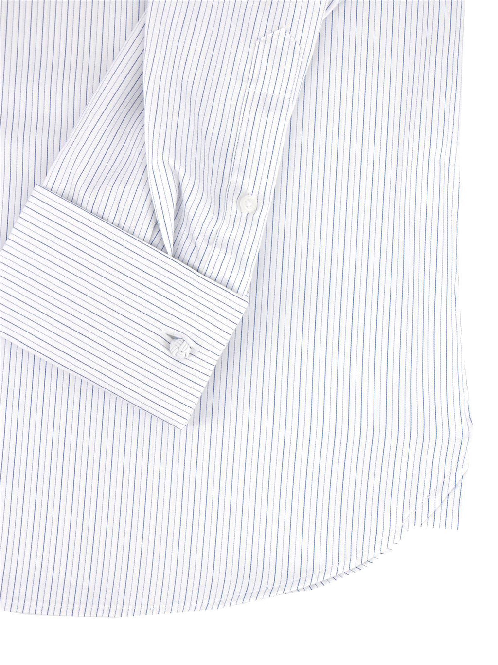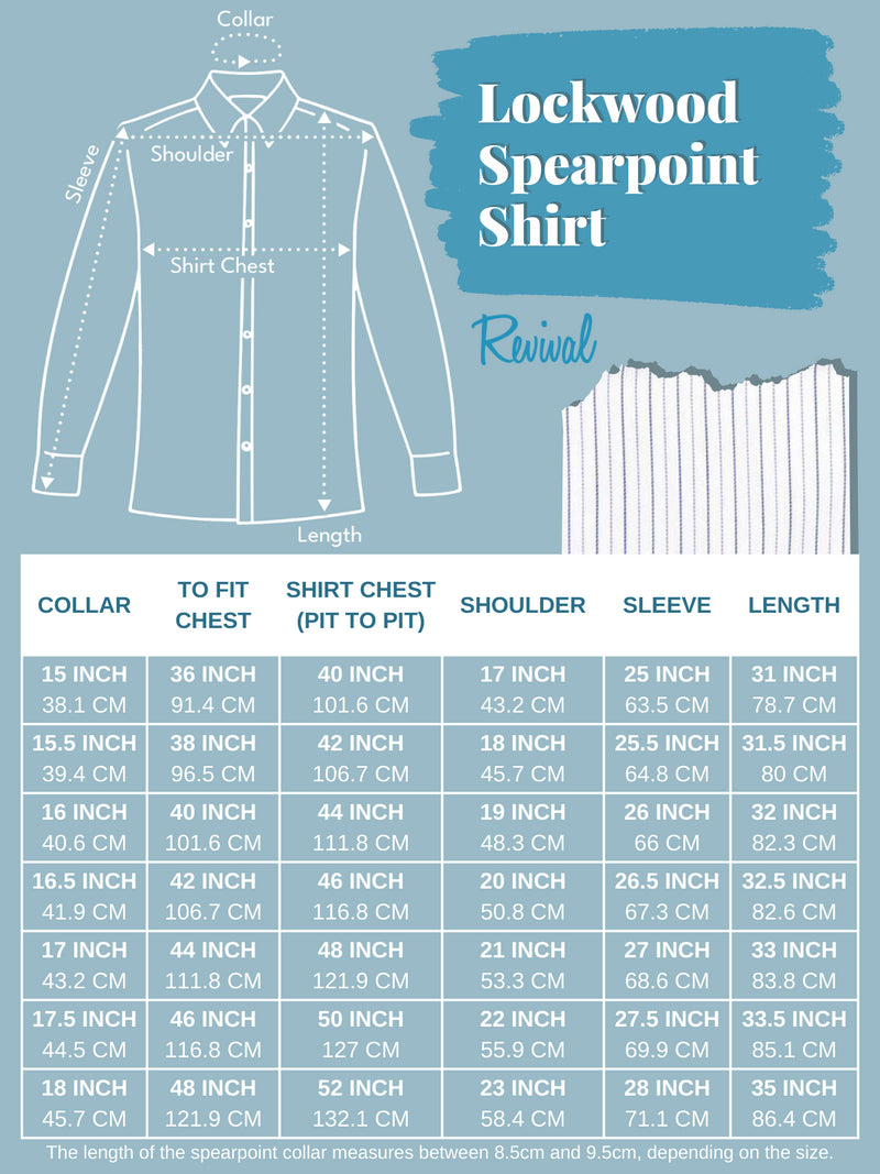 The Lockwood shirt has a blue hairline stripe and a spearpoint collar with a button tab so that the collar is pulled together for a smart and authentic look.