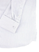 The shirts have shoulder and back yokes. Hem godets at the side seams. The Lockwood stripe shirts also have double or french cuffs which are supplied with a small knot cufflink - this can, of course, be exchanged for some of your own choice.