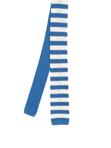 Blue & White Stripe 100% Silk Knitted Skinny Tie