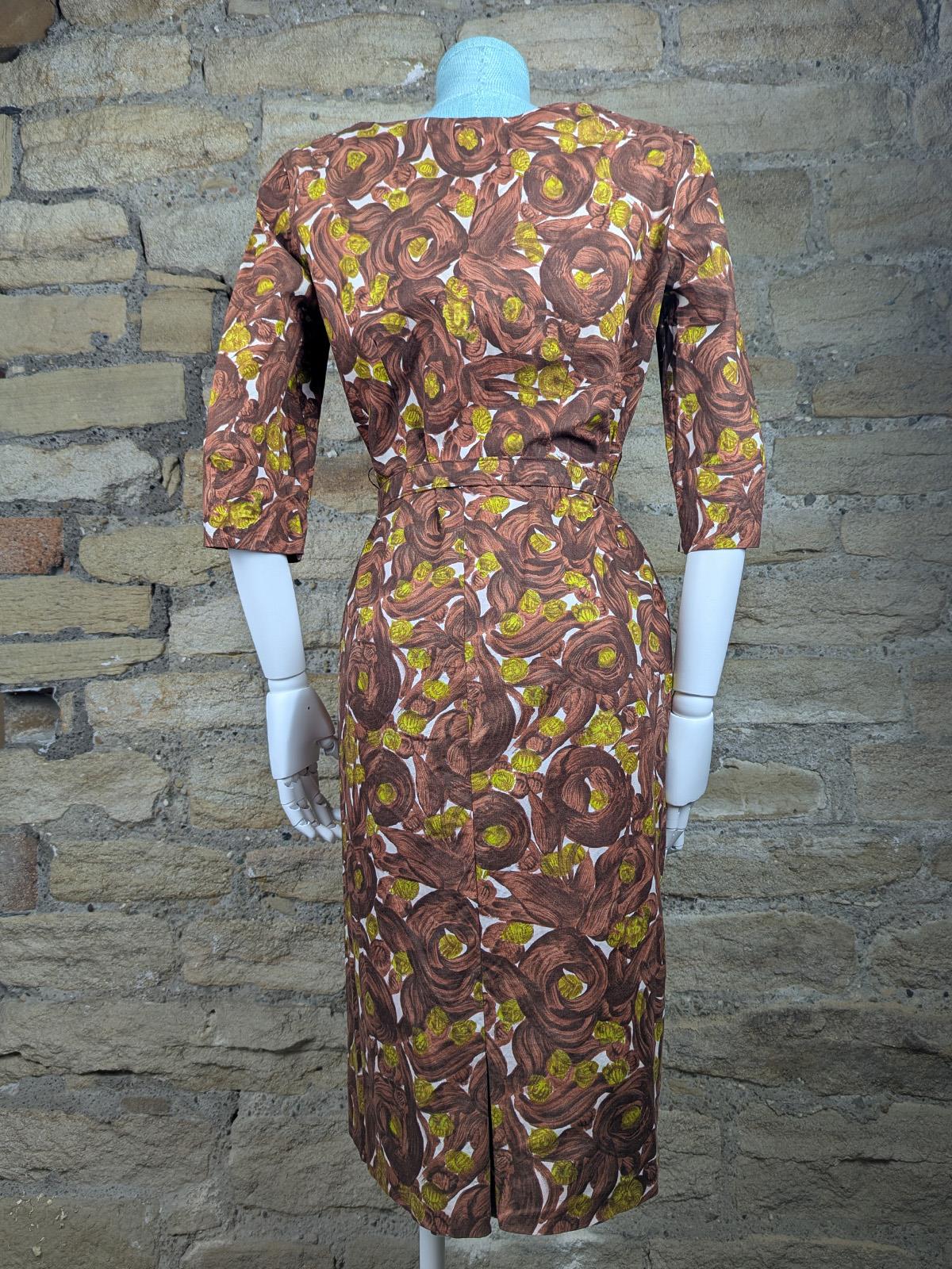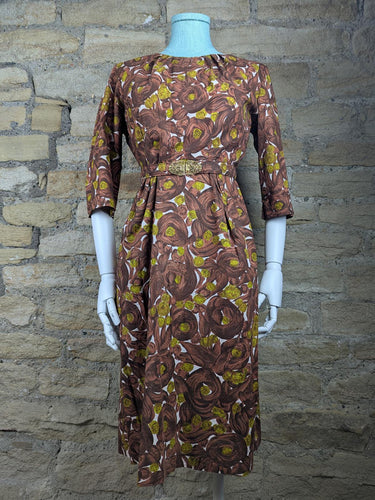 Brown Cotton 1950s Dress Ornate Belt Buckle