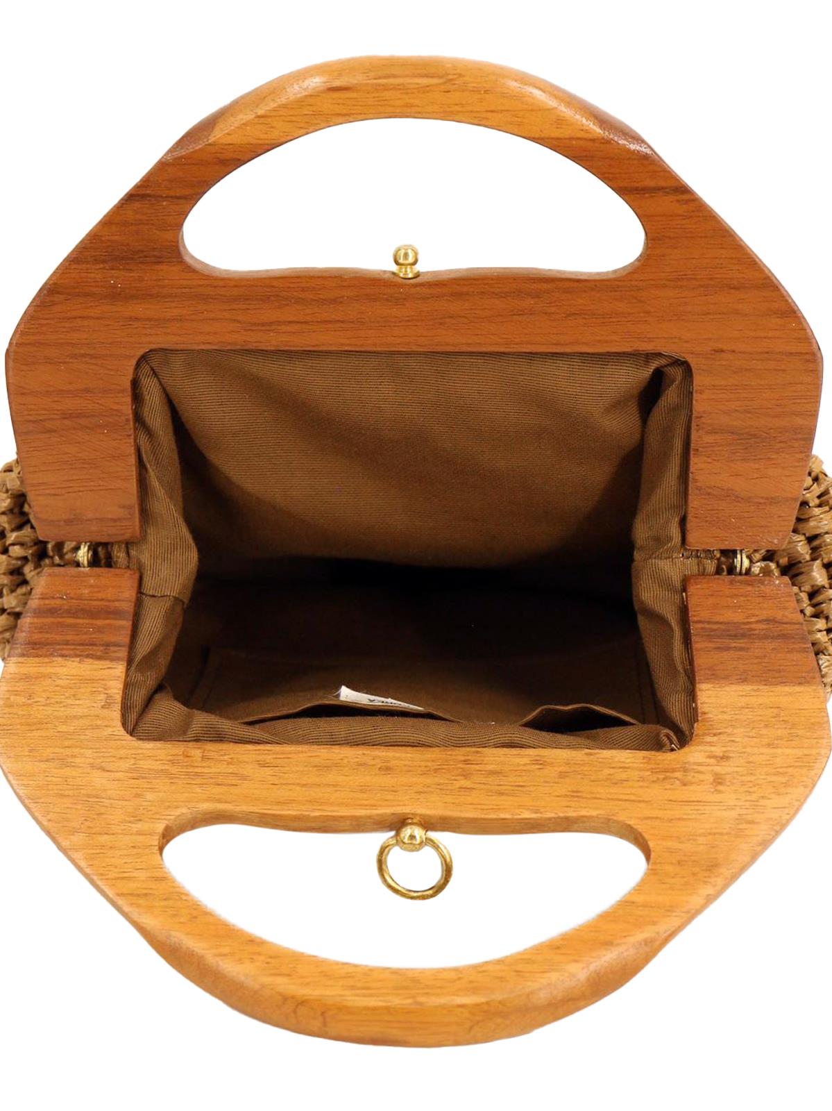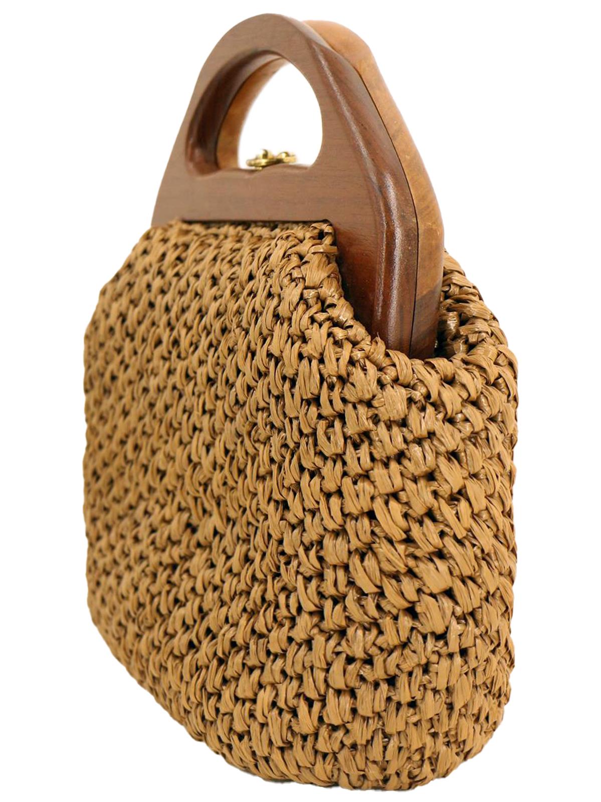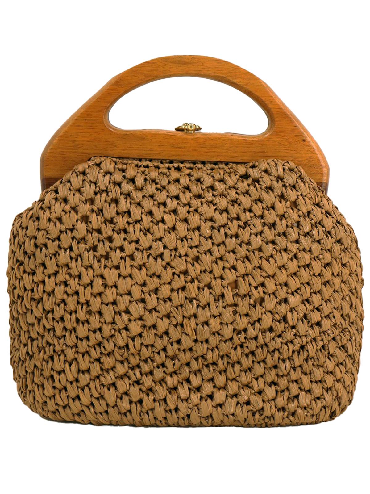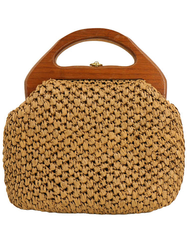 Brown Raffia Wooden Handle Vintage Grab Bag