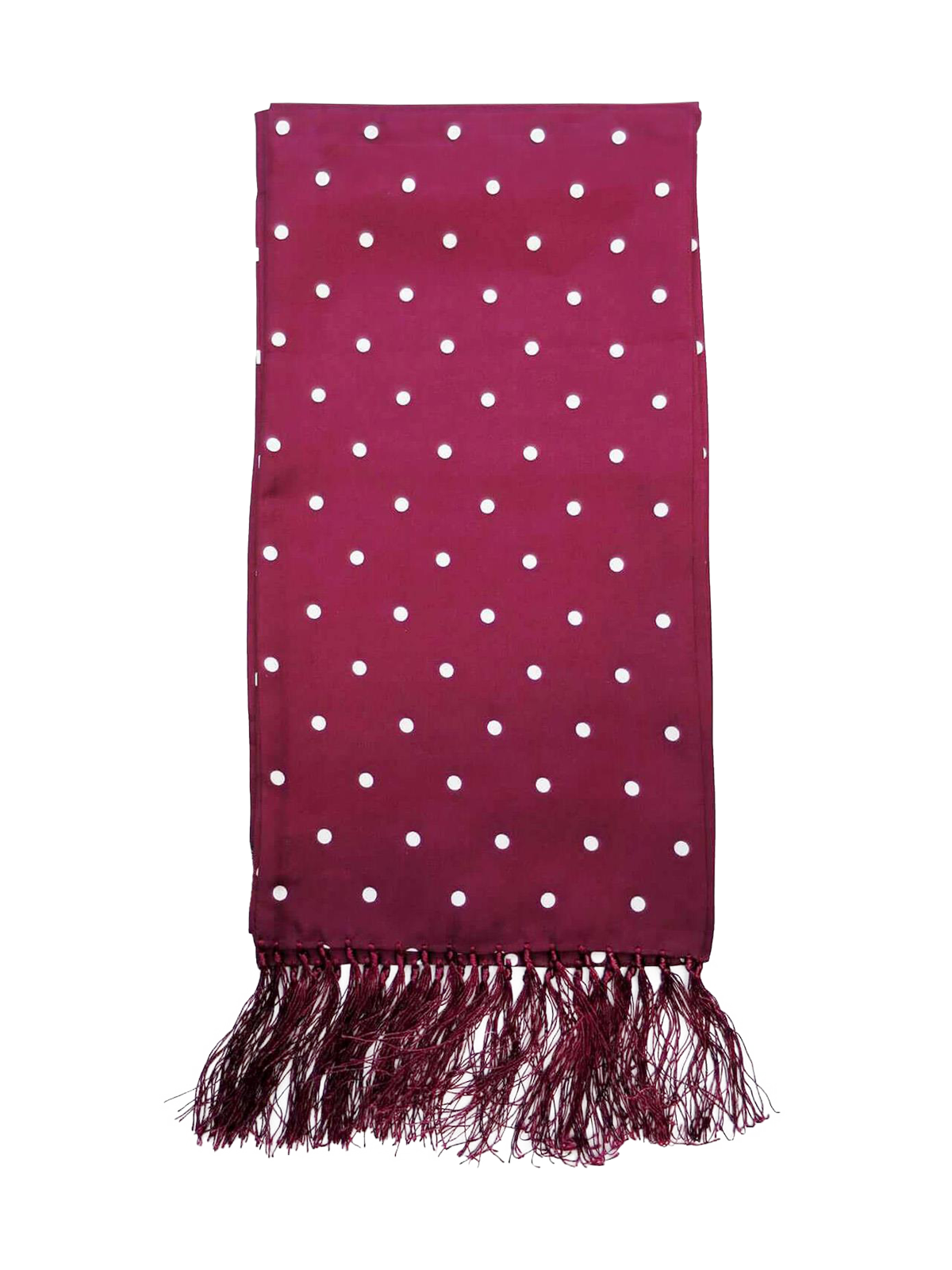 Burgundy & White Polka Dot Pure Silk Aviator Scarf