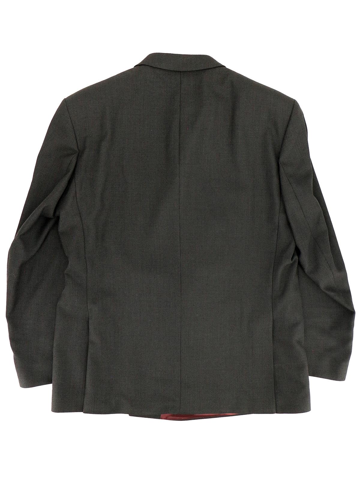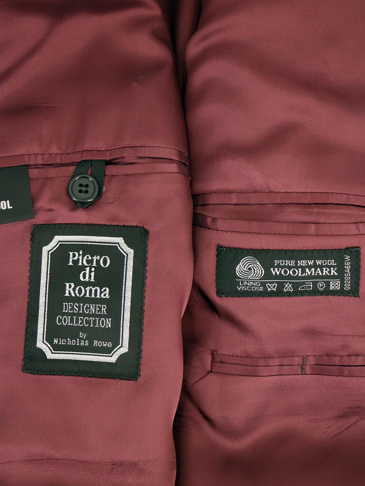 The double-breasted jacket has broad peak lapels with twin back vents. Six button front and four buttons at each wrist.