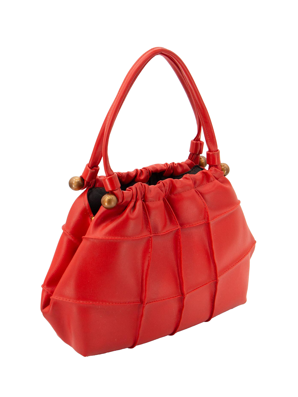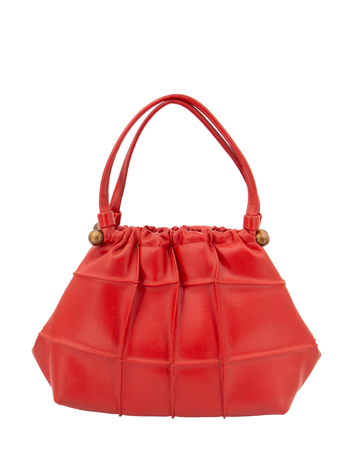 Cherry Red 1960s Vinyl Bag Pintuck Detail