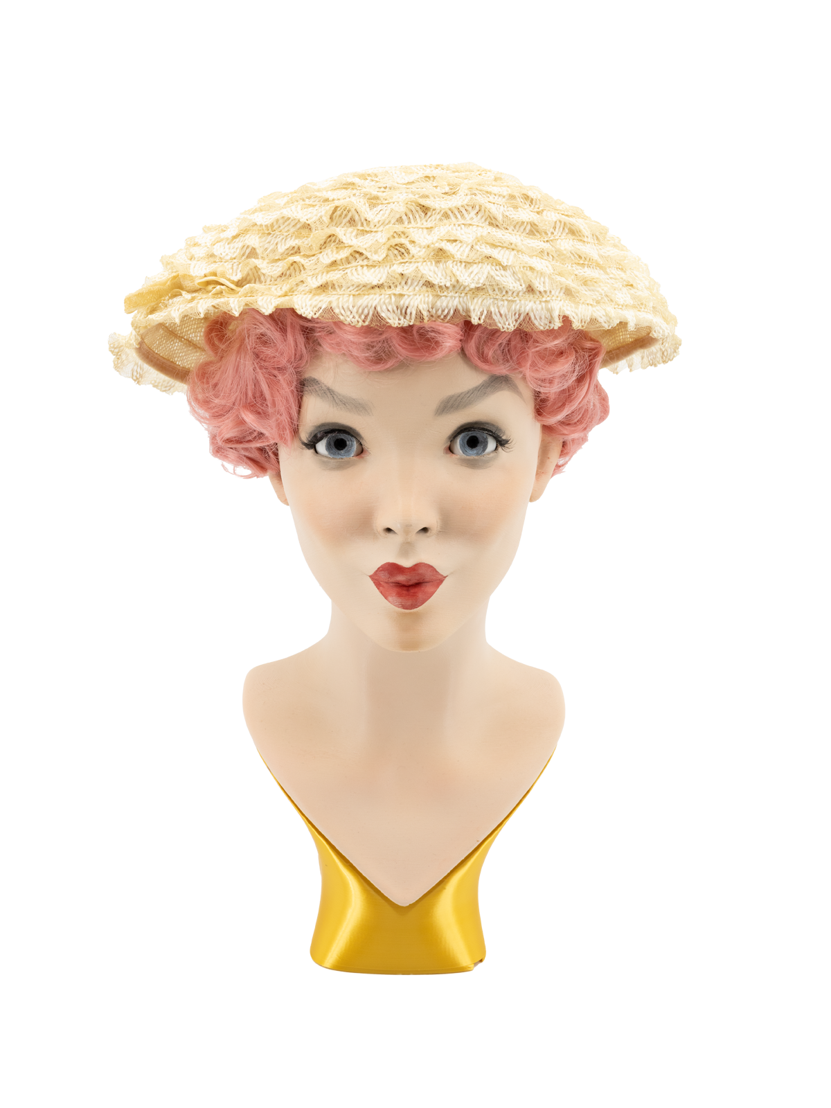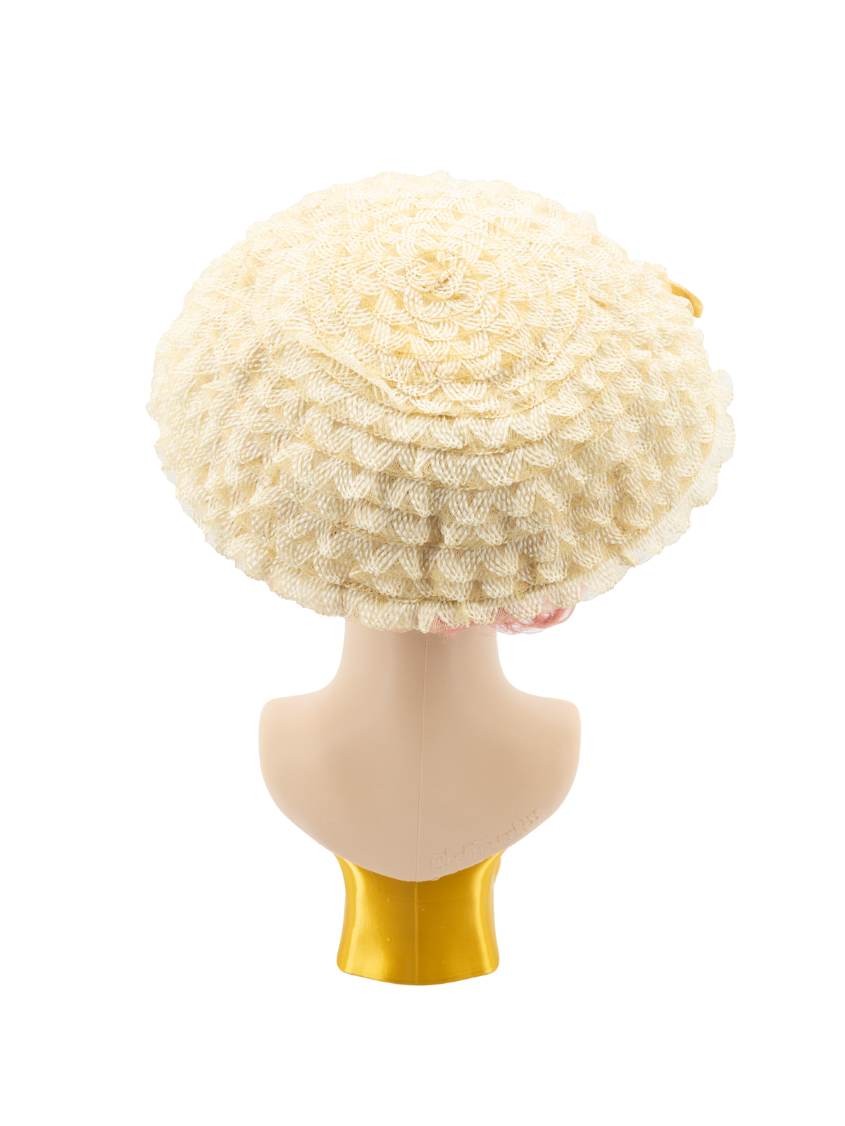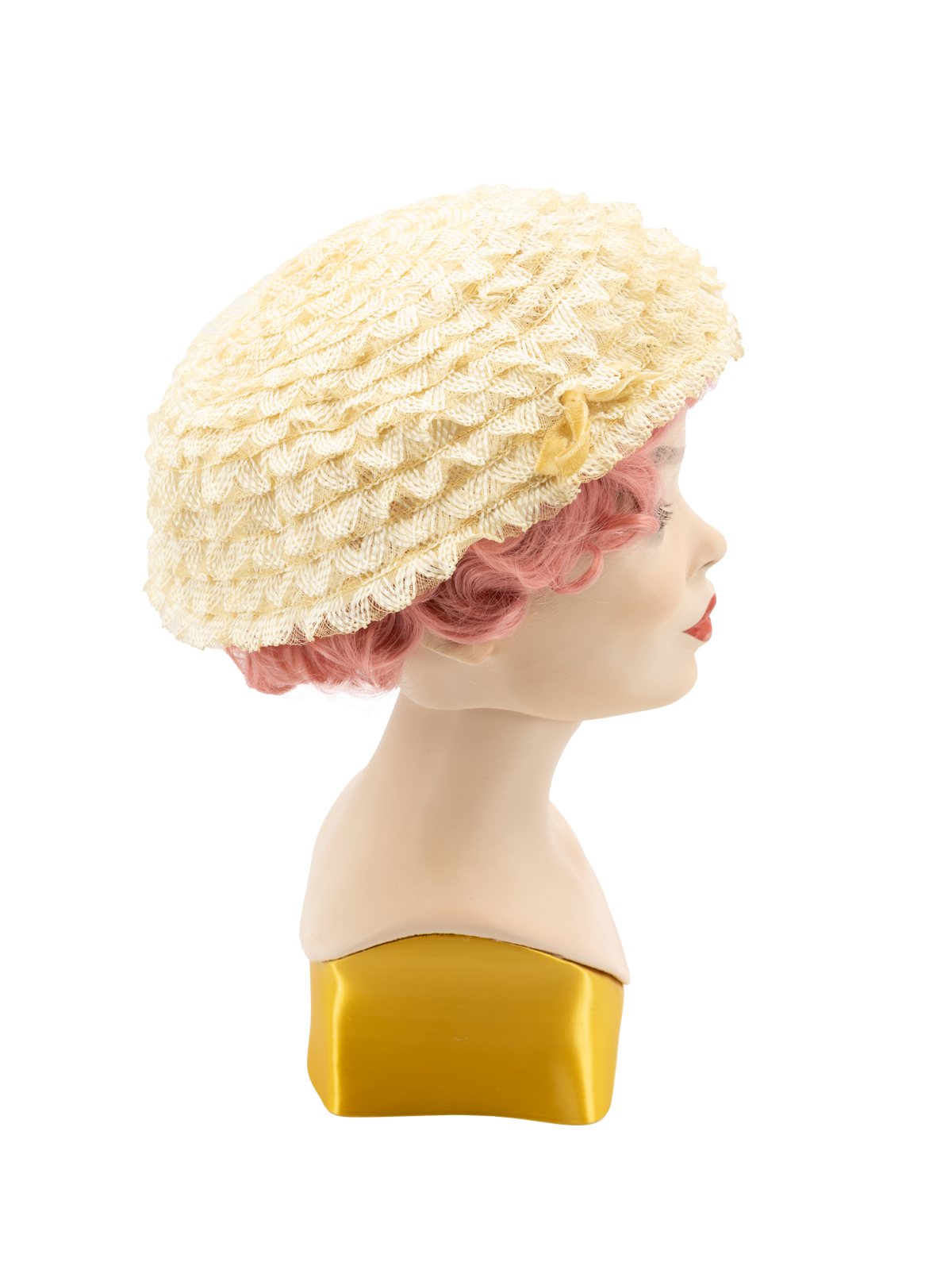 Classic 1950s Vintage Raffia Mushroom Hat - Cream