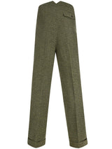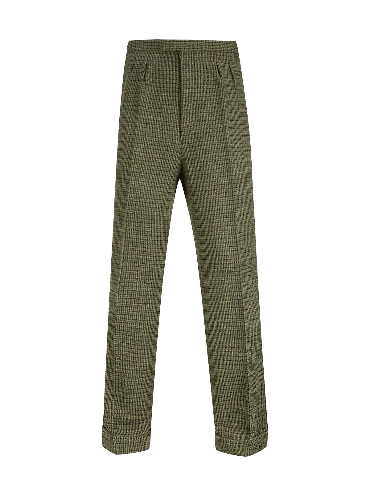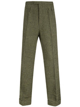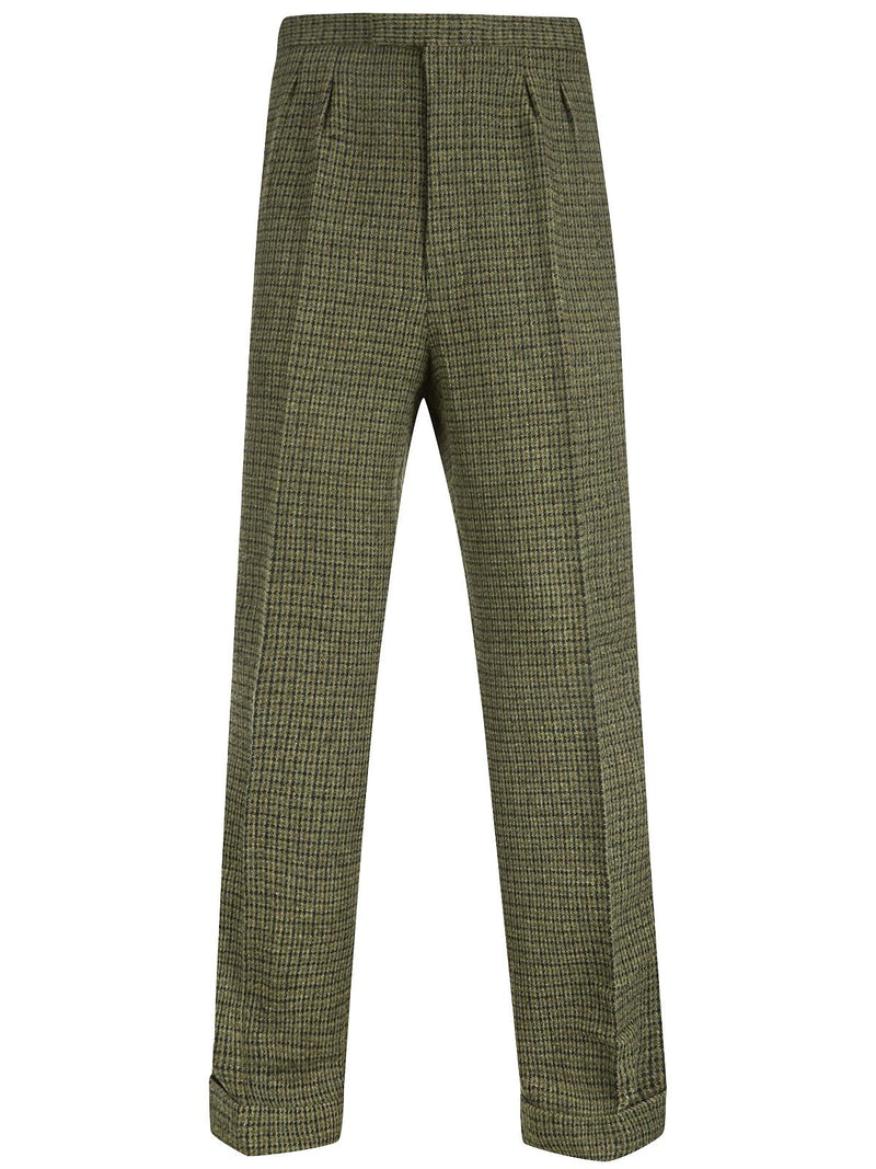Clubman Houndstooth Check Fishtail Trousers - Moss Green