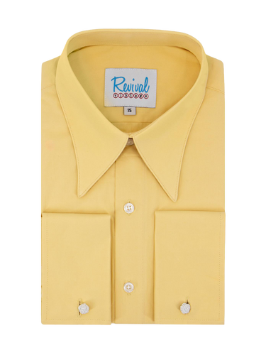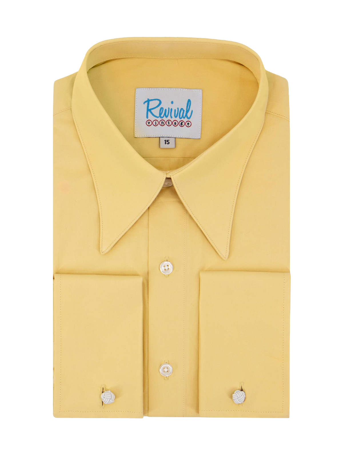 1940s Style Spearpoint Collar Shirt with French Cuff - Corn Yellow