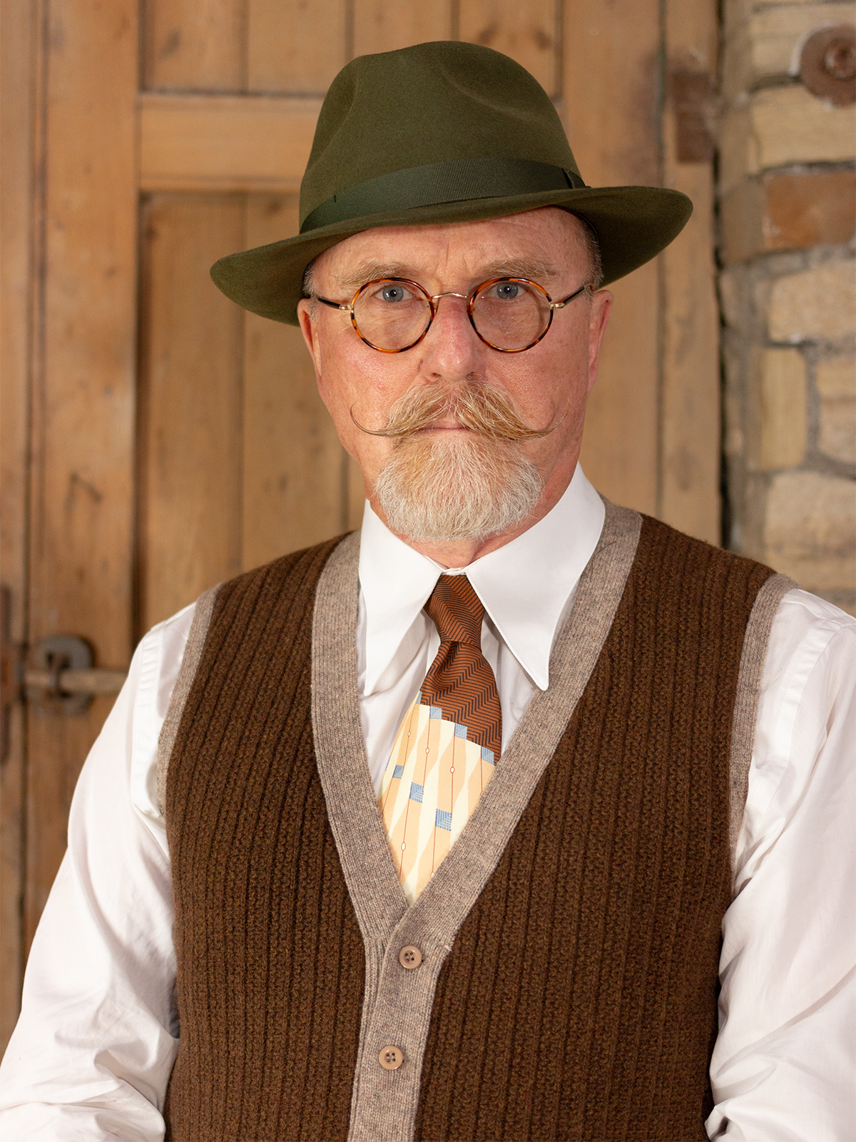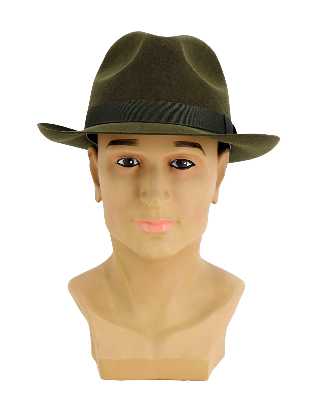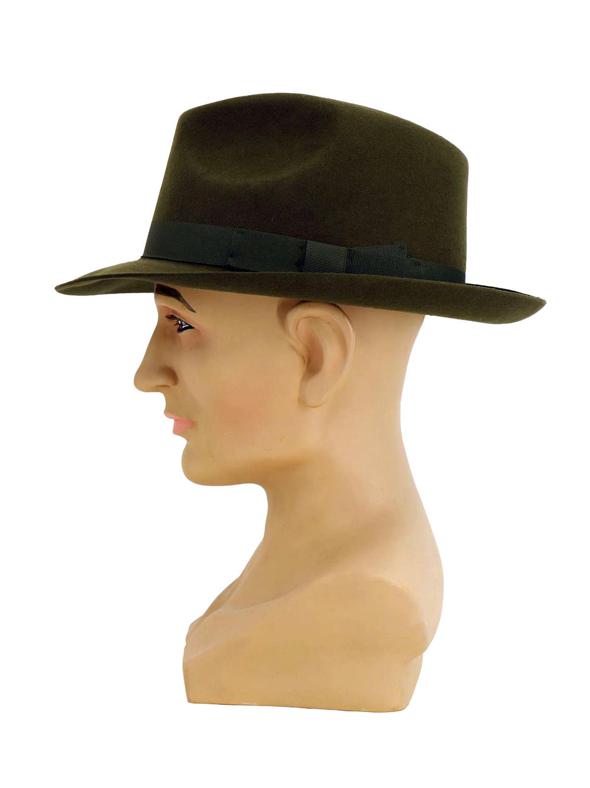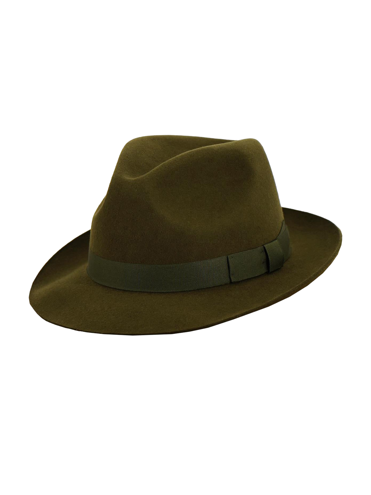 • Green wool felt with complementary grosgrain hatband.