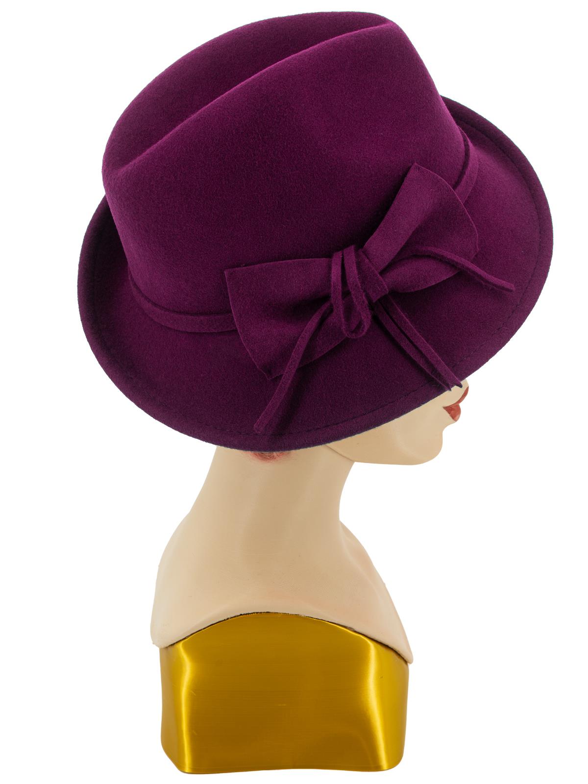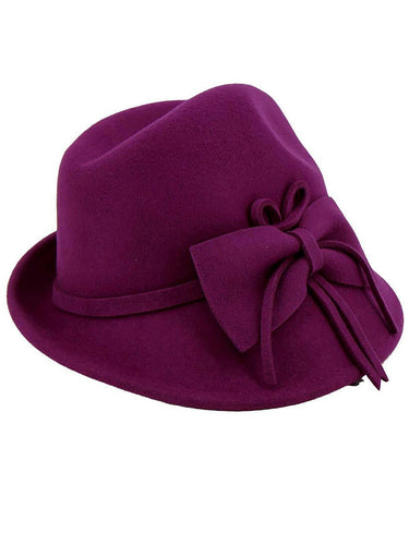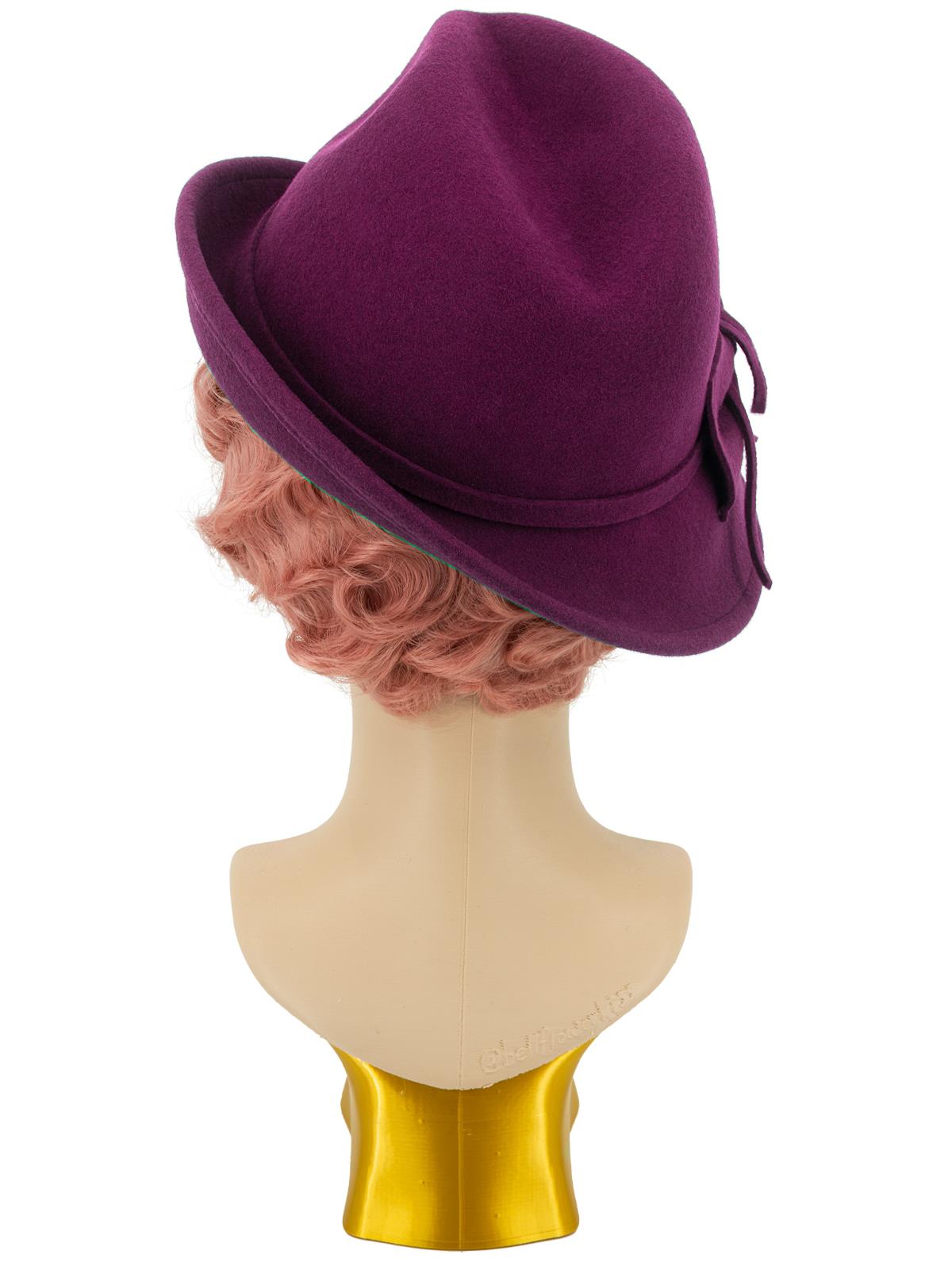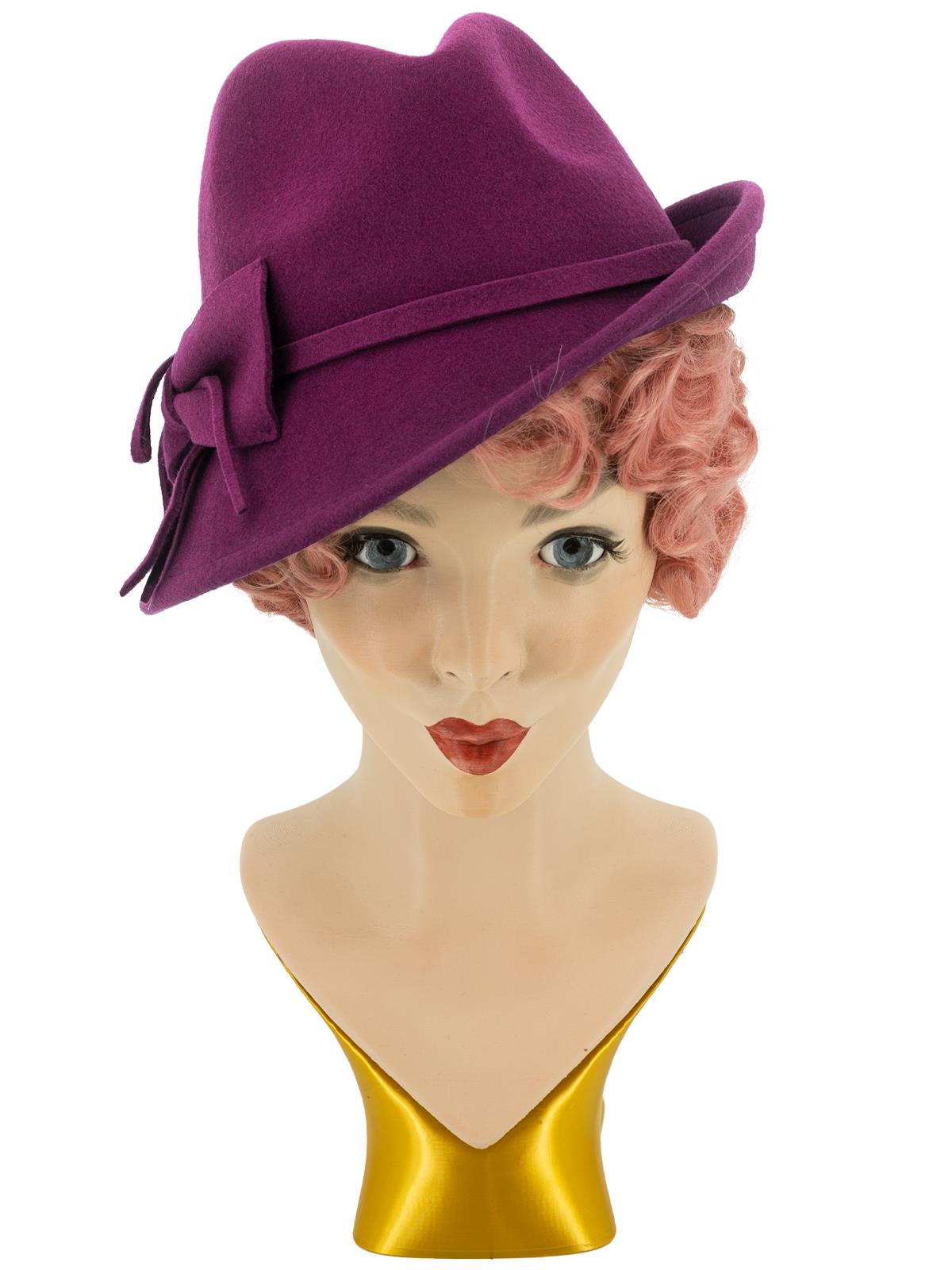 1940s vintage-inspired trilby style hat in a rich, warm-toned plum purple shade.