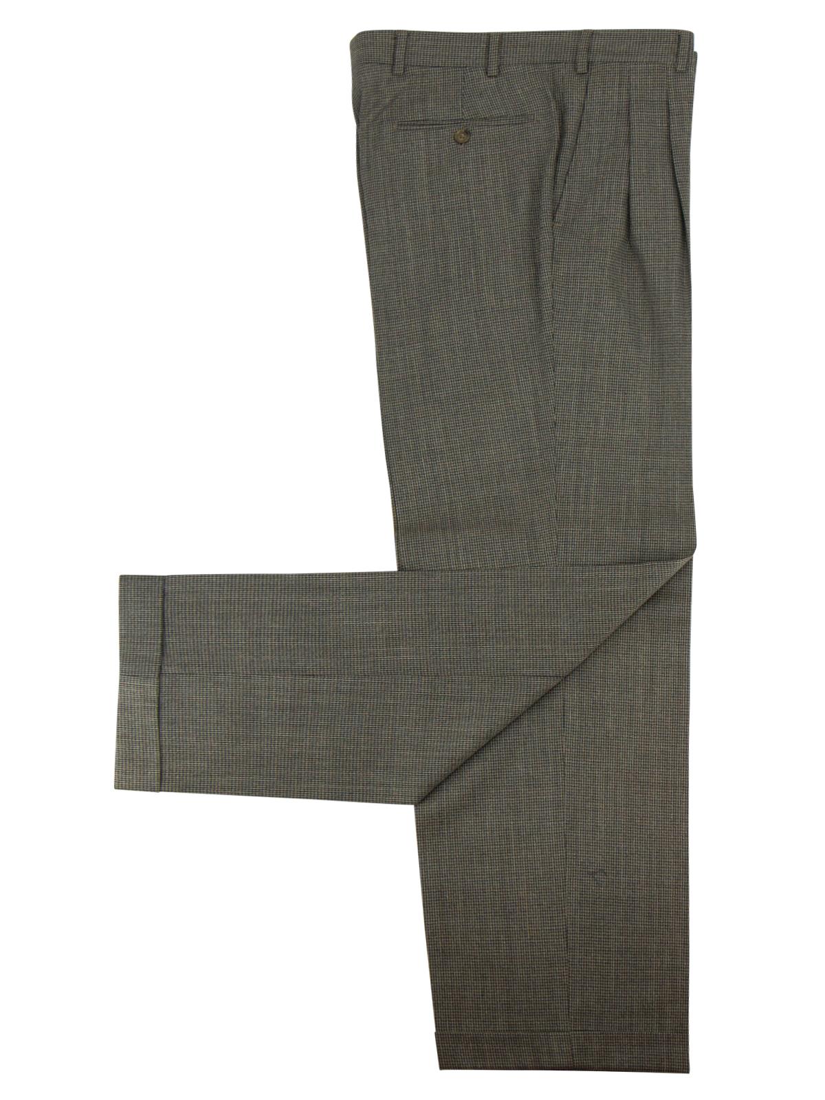 The matching trousers have pleated fronts and turn-ups in the 1940s style, with two bound pockets in the seat.