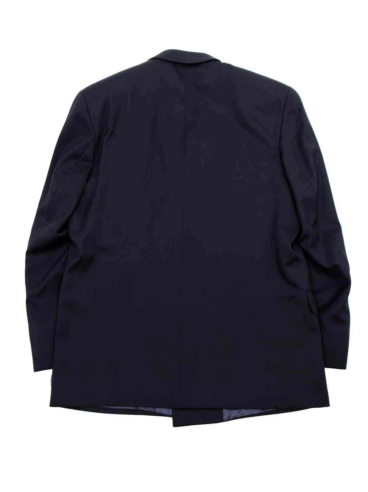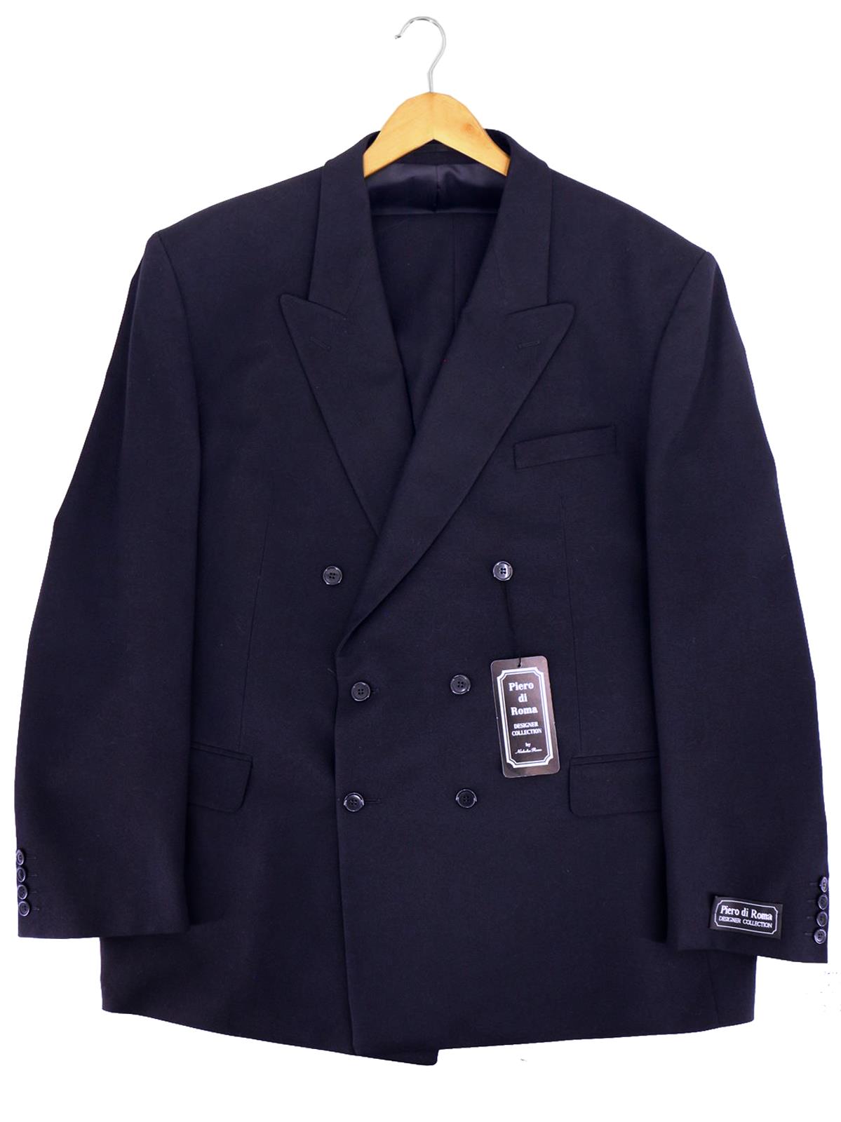Get the iconic forties post-war "demob" look with this unworn 90s wool deadstock suit, which is dark navy, almost black, in hue and made of a high-quality wool suiting cloth.